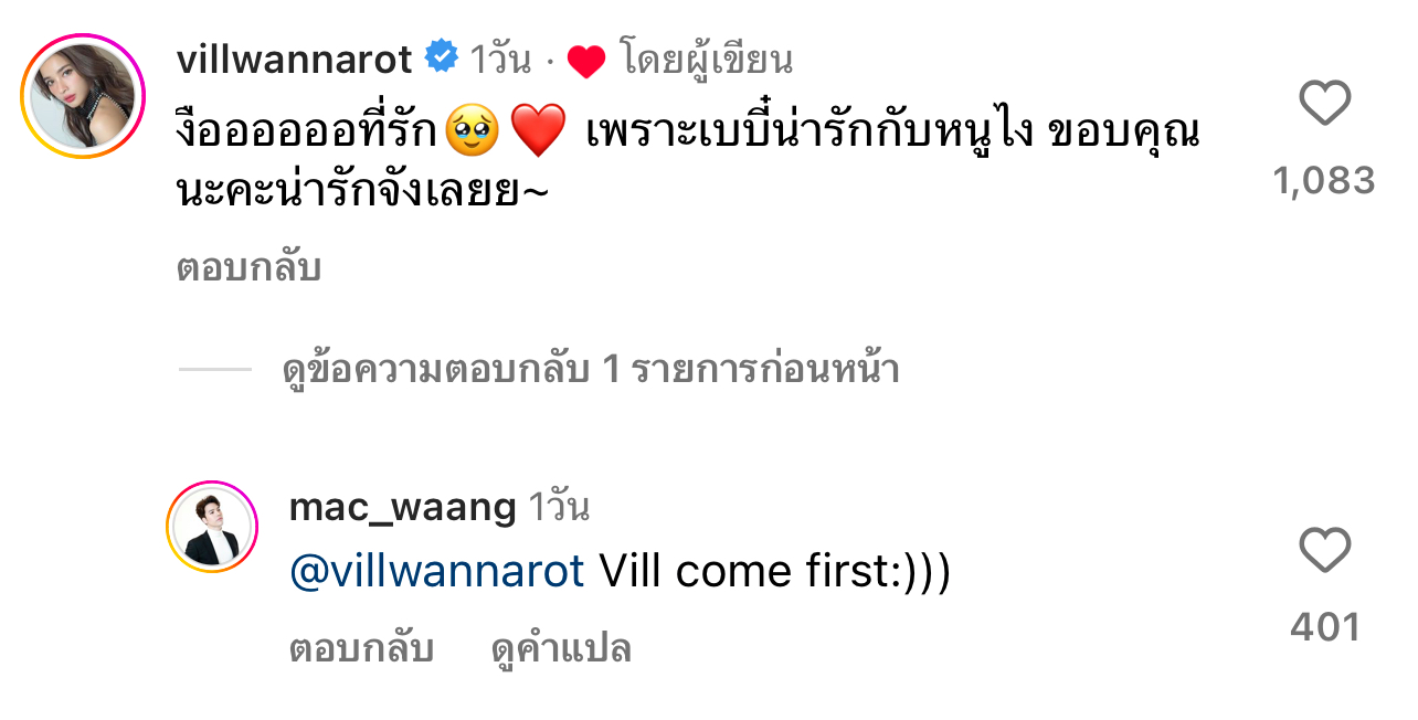 ด้าน วิว ก็ได้เข้ามาตอบกลับคอมเมนต์ว่า “งืออออออที่รัก เพราะเบบี๋น่ารักกับหนูไง ขอบคุณนะคะน่ารักจังเลยย~”