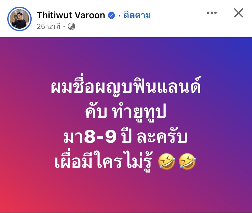 ว้ายยย เอาหล่ะค่ะ ล่าสุด ผู้ใหญ่บ้านฟินแลนด์ได้ออกมาโพสต์ว่า “ผมชื่อ ผญบ ฟินแลนด์คับ ทำยูทูปมา8-9ปี ละครับ เผื่อใครไม่รู้😂😂“ งานนี้ทำเอาชาวเอ๊ะ ว่าที่แท้จริงแล้ว โพสต์ถึงใครนะ เอ๊ะ?