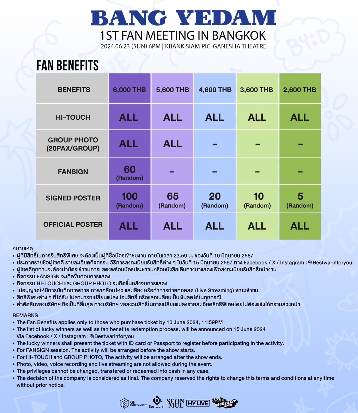 ปักหมุดรอได้เลยสำหรับงาน “BANG YEDAM” 1st Fan Meeting In Bangkok ที่จะจัดขึ้นในวันอาทิตย์ที่ 23 มิถุนายน 2567 ณ โรงละครเคแบงก์สยามพิฆเนศ เปิดจำหน่ายบัตรวันเสาร์ที่ 5 พฤษภาคม 2567 เวลา 10.00 น. ทาง www.BESTWARINTIKET.com พร้อมสิทธิ์ HI-TOUCH กับ “บังเยดัม” ทุกที่นั่งแน่นอน