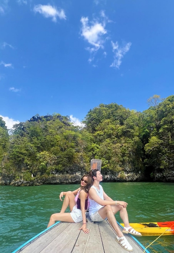 “Kayak time! พายเรือคายัคที่อ่าวท่าเลน ธรรมชาติป่าโกงกางสวยสงบมากกก เลือกเวลาดีๆ ไม่มีคนเลย ไพรเวทสุดๆ ขอบคุณเบบี๋ที่พาไปนะคะ พายเรือเก่งมากแล้วยังถ่ายรูปสวยอีก #wwcoupleinkrabi”