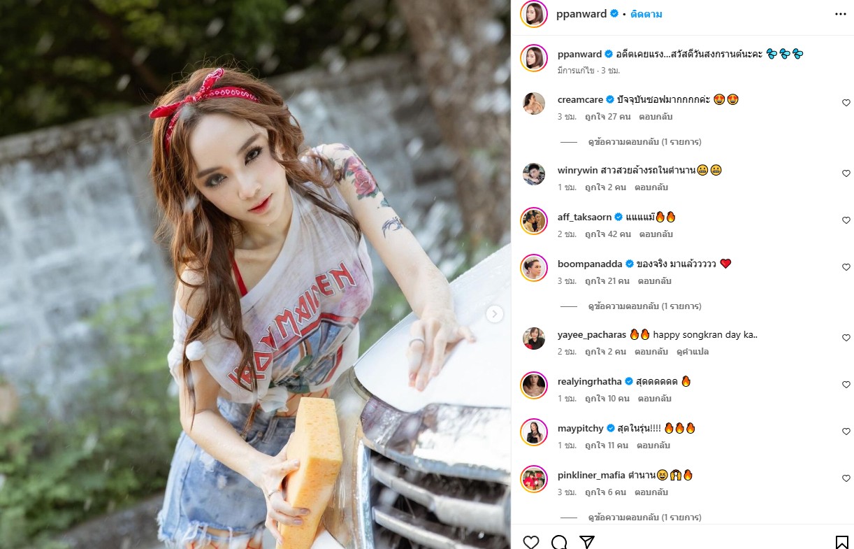 นักแสดงมากฝีมือและเป็นคุณแม่คนเก่ง สำหรับ “เป้ย ปานวาด” ล่าสุดรับเทศกาลสงกรานต์ด้วยการปล่อยภาพชุดล้างรถมาในแนวแอบแซ่บเบาๆ