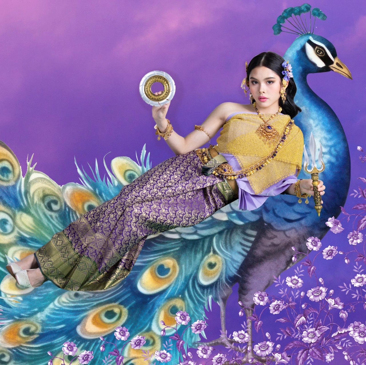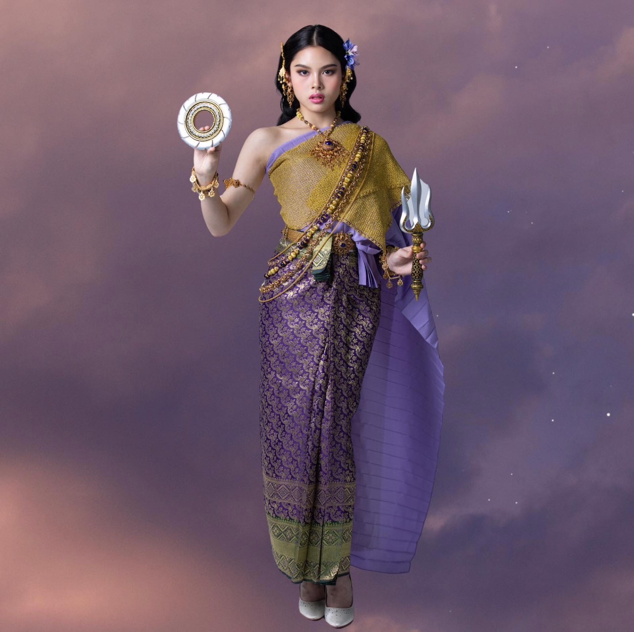 ปีนี้วันเสาร์ที่ 13 เมษายน 2567 นี้ เป็นวันมหาสงกรานต์ ซึ่งนางสงกรานต์นามว่า “นางมโหธรเทวี” เป็นนางสงกรานต์ประจำวันเสาร์ สีประจำวัน คือ สีม่วง นางมโหธรเทวีทัดดอกสามหาว (ผักตบชวา) มีนิลรัตน์เป็นเครื่องประดับ ภักษาหาร คือ เนื้อทราย อาวุธคู่กาย พระหัตถ์ขวาถือจักร พระหัตถ์ซ้ายถือตรีศูล เสด็จนอนลืมตา ประทับมยุราปักษา (นกยูง) เป็นพาหนะ