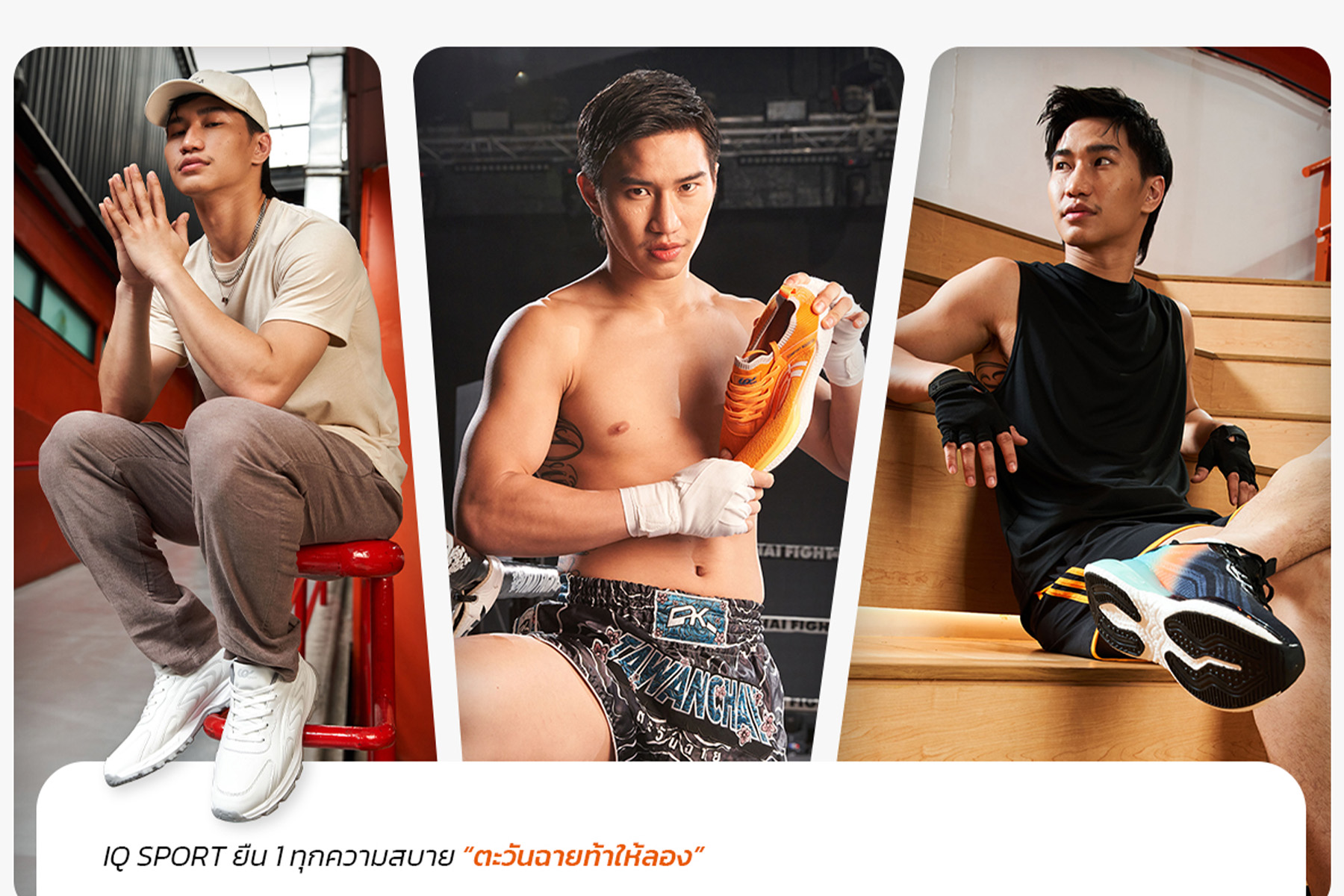 โดย IQ SPORT ตั้งใจนำเสนอรองเท้าที่ออกแบบมาเพื่อรองรับไลฟ์สไตล์ของคนไทยผ่าน “ตะวันฉาย พี.เค.แสนชัยมวยไทยยิม” แชมป์โลกมวยไทย รุ่นเฟเธอร์เวต ONE Championship นักมวยเซเลบริตี้คนดังที่เป็นแรงบันดาลใจและต้นแบบด้านกีฬาของหลาย ๆ คน และยังเป็น Sneakerhead ที่มีความชื่นชอบรองเท้าผ้าใบเป็นชีวิตจิตใจ และพิถีพิถันในเรื่องของการเลือกรองเท้าเพื่อสวมใส่ให้เหมาะกับแต่ละกิจกรรมเป็นอย่างมาก อีกทั้งยังเป็นตัวแทนของคนรุ่นใหม่ที่มีไลฟ์สไตล์การใช้ชีวิตที่เต็มที่ในทุก ๆ ด้านให้เป็นผู้บอกเล่าเรื่องราว และแนะนำ IQ SPORT ในคอนเซ็ปต์ใหม่ผ่านแคมเปญ “ยืนหนึ่งทุกความสบาย…ตะวันฉาย ท้า! ให้ลอง”