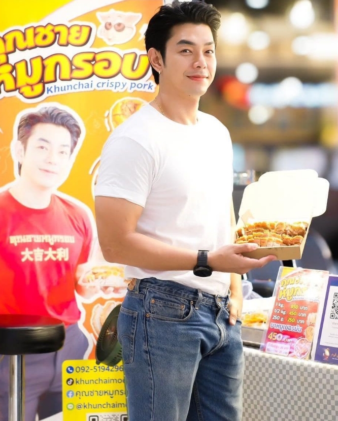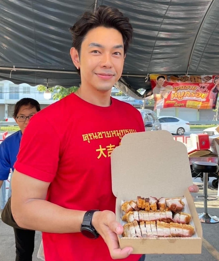 พระเอกหนุ่ม คุณชายหมูกรอบ อาร์ต พศุตม์ ที่ตอนนี้กำลังรุ่งกิจการหมูกรอบขายดิบขายดี ออกบูธไม่ได้หยุด