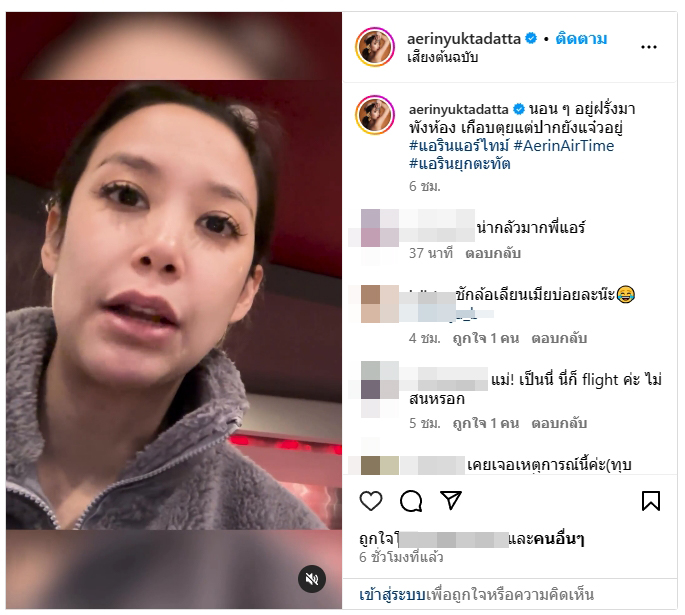 โดยนักแสดงสาว แอริน โพสต์คลิปลง IG แคปชั่นระบุว่า นอนๆ อยู่ฝรั่งมาพังห้อง เกือบตุยแต่ปากยังแจ๋วอยู่ #แอรินแอร์ไทน์ #AerinAirTime #แอรินยุกตะยัต ซึ่งในคลิปนักแสดงสาวว่าที่คุณแม่ ได้เล่าวินาทีระลึกว่า ”เมื่อคืนตอนตี 4 ได้ยินเสียงเคาะประตูดังมาก ๆ เลยเดินไปดูในช่องประตู เป็นฝรั่งคนหนึ่ง หัวโล้น สักทั้งตัว เราเลยบอกเบญว่าให้ไปเปิดประตูบอกเขาว่ามาห้องผิดนะ แม่งไม่เชื่อ ไม่ยอม บอกโน เนี้ยห้องกู ก็เริ่มดันประตูกันอยู่นานมาก ประมาณ 10 นาที พอปิดประตูได้ก็ล็อกประตู แม่งก็พยายามวิ่งจะพังประตู ไม่ได้ถีบเบา ๆ ถีบเต็มแรง