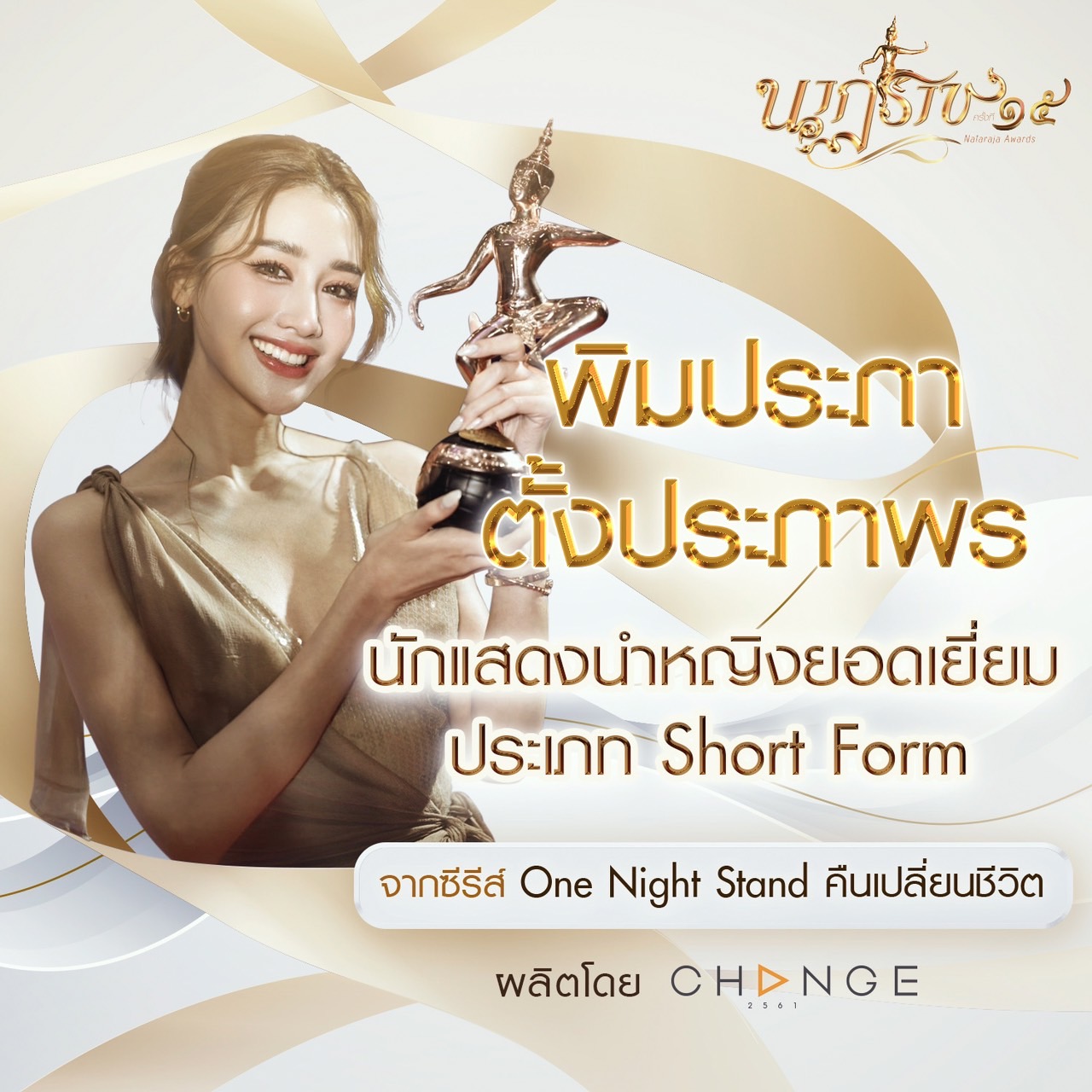 รางวัลคุณค่าแห่งความสำเร็จ พิม พิมประภา คว้า นักแสดงนำหญิงยอดเยี่ยม ในซีรีส์ One Night Stand คืนเปลี่ยนชีวิต ผลิตโดย CHANGE2561 จากเวทีอันทรงเกียรติ “นาฎราช” ครั้งที่ 15 ประจำปี 2566
