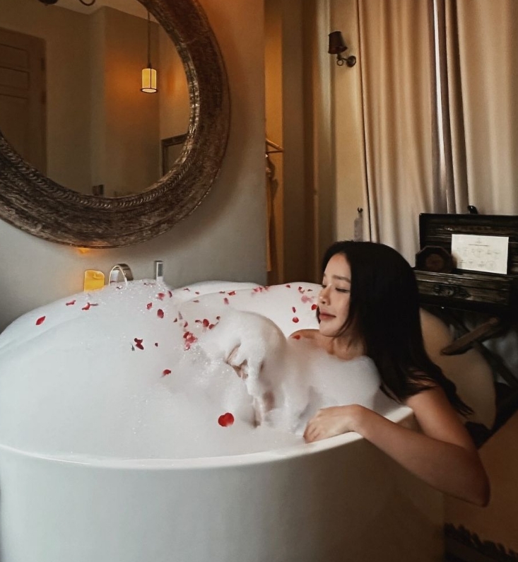 ล่าสุด สาวแอร์ก็ขอหลบลูกมาเปิดโหมดแซ่บร้อนฉ่า นอนแช่น้ำชิลล์ๆ ในอ่าง พร้อมกันนี้สาวเจ้าก็ยังได้แถมซีนฮอตเวอร์กับชอตแชะภาพเซลฟี่หน้ากระจก ขณะที่ปลดเปลื้องท่อนบนมีแค่แขนเรียวเล็กปิดหน้าอกหน้าใจเอาไว้ พร้อมกันนี้สาวเจ้าก็ยังได้เขียนแคปชั่นบอกเอาไว้ว่า “ขอหนีลูกหน่อยยย…
