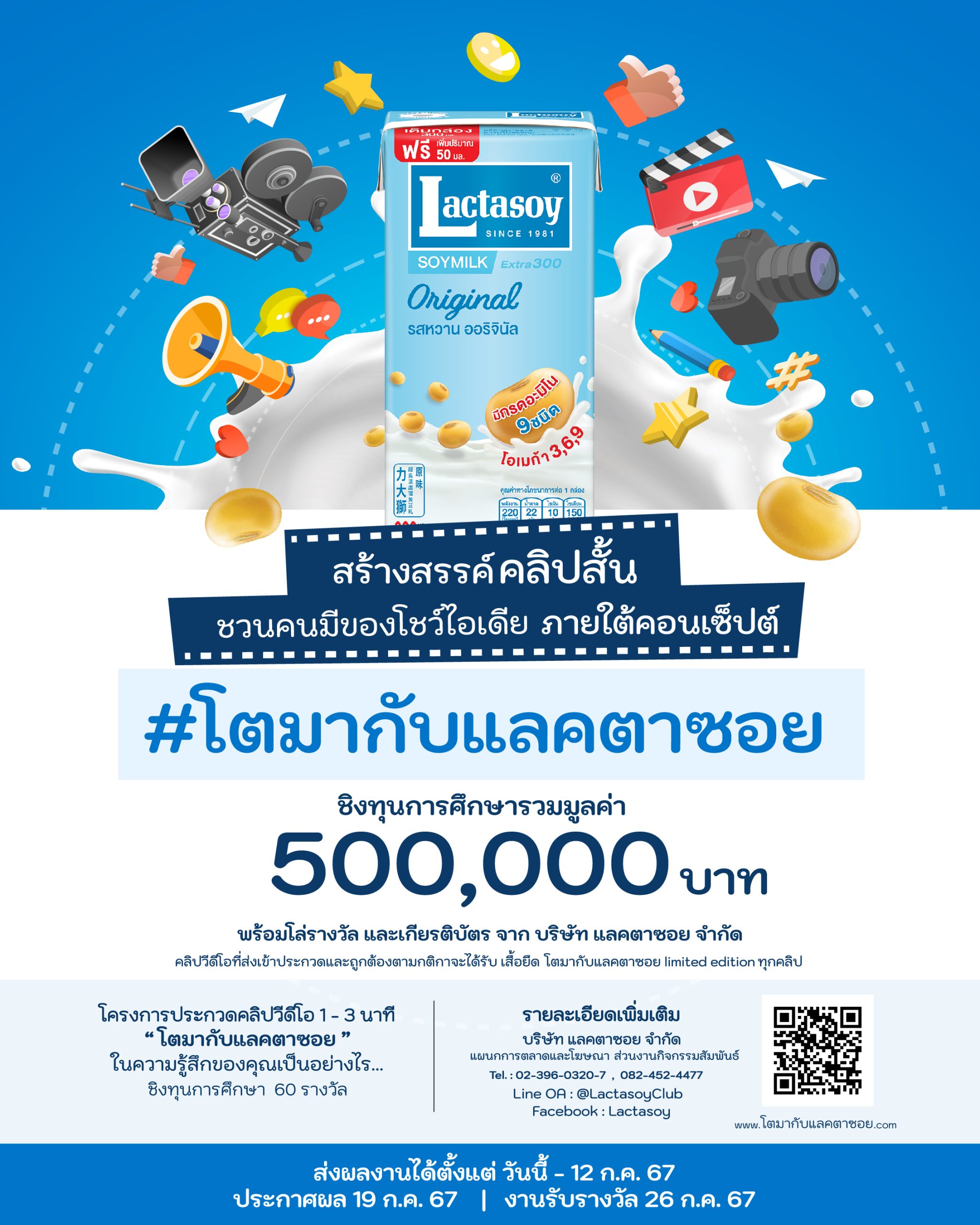สำหรับรายละเอียดในการร่วมโครงการนี้ สามารถดูรายละเอียดได้ที่ https://www.lactasoy.com/th/growingupwithlactasoy/