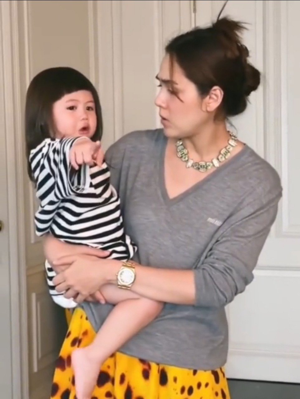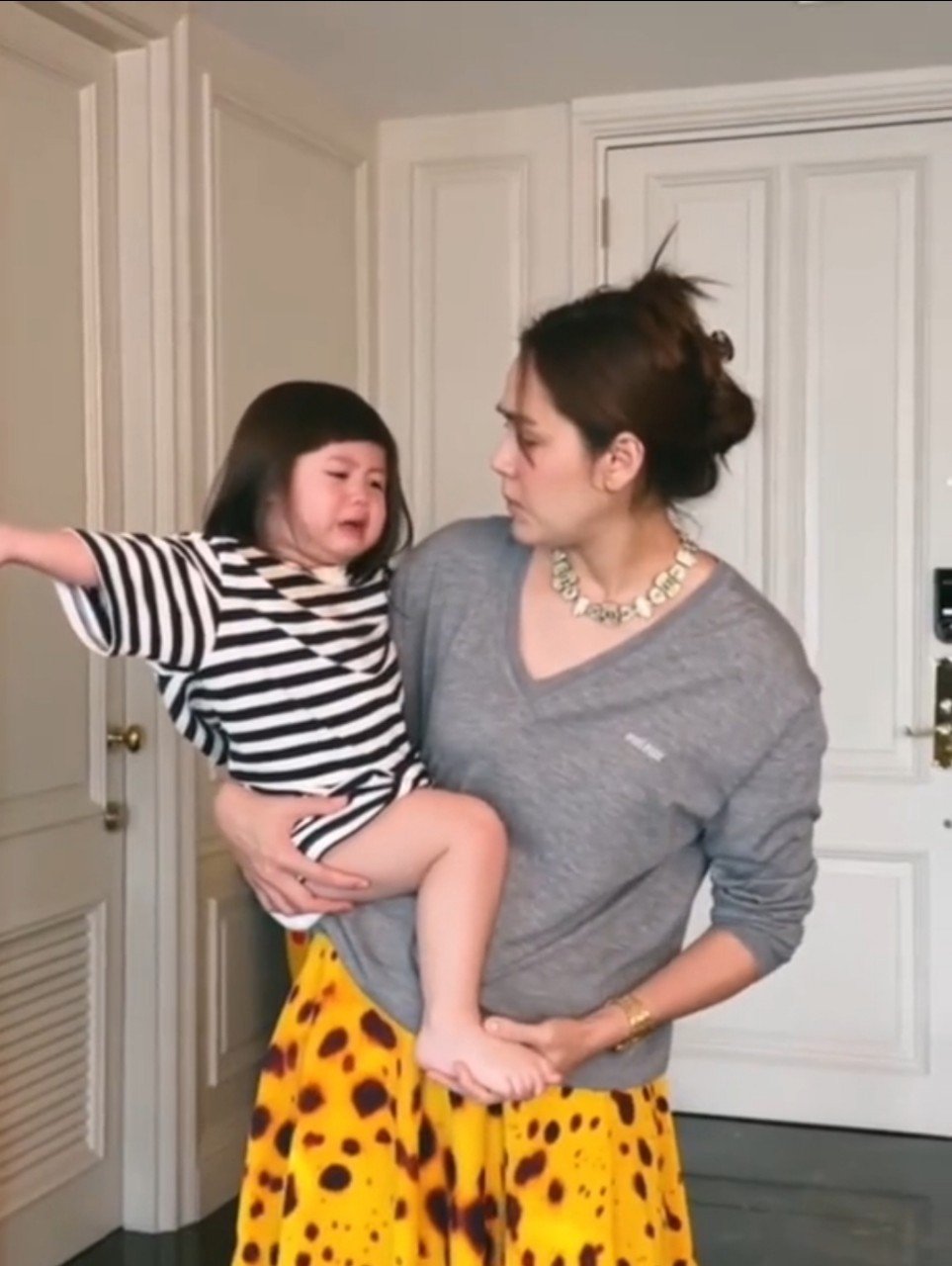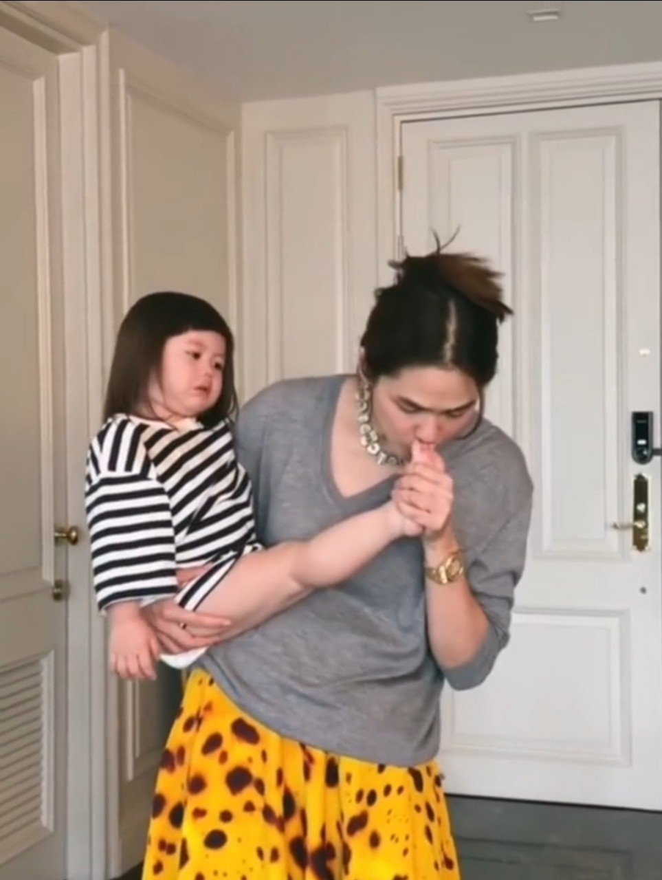 โถพึ่งจะเคยเห็นน้อนงอแงหรือร้องไห้เพราะปกตแล้วเราจะเห็นจะเห็นแต่มุมน่ารักของ น้องเกล ลูกสาวของ ชมพู่ อารยา กับสามีหนุ่ม น็อต วิศรุต ที่เรียกได้ว่าไม่เคยได้เห็นมุมงอแงหรือร้องไห้ แต่ล่าสุดก็มีโมเมนต์ที่ เจ๊เกล ปล่อยโฮร้องไห้เพราะเท้าไปชนเข้ากับอะไรสักอย่าง จึงทำให้ แม่ชม ต้องงัดสกิลโอ๋ในอ้อมกอด พร้อมเป่าเพี้ยง ได้ยาวิเศษจากคุณแม่แบบนี้เป็นอันว่าหายเจ็บหายแน่นอน หลังจากที่ น้องเกล ร้องไห้ได้ไม่นาน หนูน้อยก็ถูกชวนคุยถึงเรื่องของเล่น จนแทบลืมว่าตัวเองเจ็บอยู่