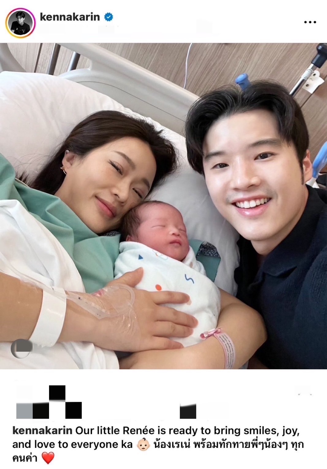 ล่าสุดได้ คุณพ่อป้ายแดง เคน-นครินทร์ ได้แชร์ภาพแรกกับลูกสาวในอ้อมกอด ถือว่าเป็นของขวัญวันเกิดของคุณเคนจากคุณเชอรี่ พร้อมด้วยข้อความแบบนี้ @kennakarin Our little Renée is ready to bring smiles, joy, and love to everyone ka 👶🏻 น้องเรเน่ พร้อมทักทายพี่ๆน้องๆ ทุกคนค่า