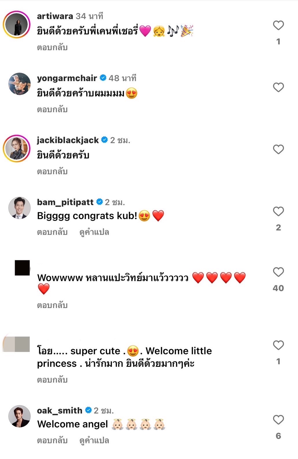 ซึ่งพอทุกคนได้เห็นภาพนี้ต้องบอกเลยว่าช่างความละมุนละไมดีต่อใจซะเหลือเกิน ต่างก็เข้าไปแสดงความาชื่นชมกันอย่างล้นหลาม ทั้งคนในวงการบันเทิง รวมไปถึงแฟน ๆ จำนวนมาก