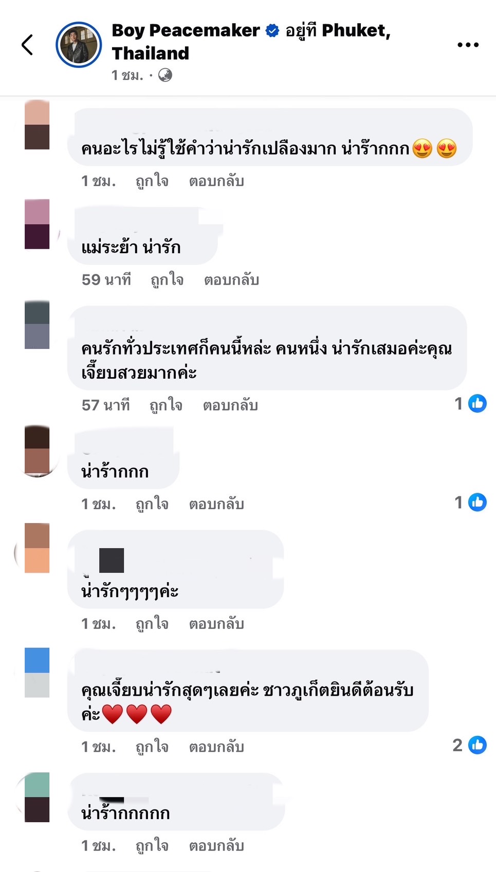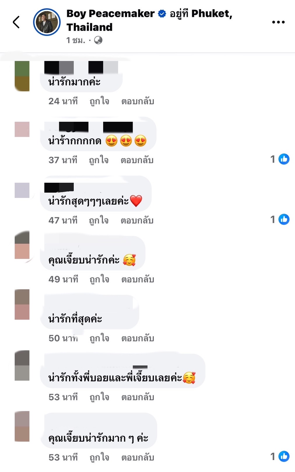 พอแฟนๆที่ได้เห็นคลิปนี้ใน Facebook : boy peacemaker ต่างก็เข้าไปคอมเมนต์เป็นเสียงเดียวกันแบบนี้ น่ารักมากค่ะ , น่าร้ากกกก , น่ารักสุดๆๆๆเลยค่ะ , คุณเจี๊ยบน่ารักค่ะ , น่ารักทั้งพี่บอยและพี่เจี๊ยบเลยค่ะ , คนอะไรไม่รู้ใช้คำว่าน่ารักเปลืองมาก น่าร๊ากกก , แม่ระย้า น่ารัก , คนรักทั่วประเทศก็คนนี้แหละ คนหนึ่ง น่ารักเสมอค่ะคุณเจี๊ยบสวยมากค่ะ , คุณเจี๊ยบน่ารักสุดๆเลยค่ะ ชาวภูเก็ตยินดีต้อนรับค่ะ
