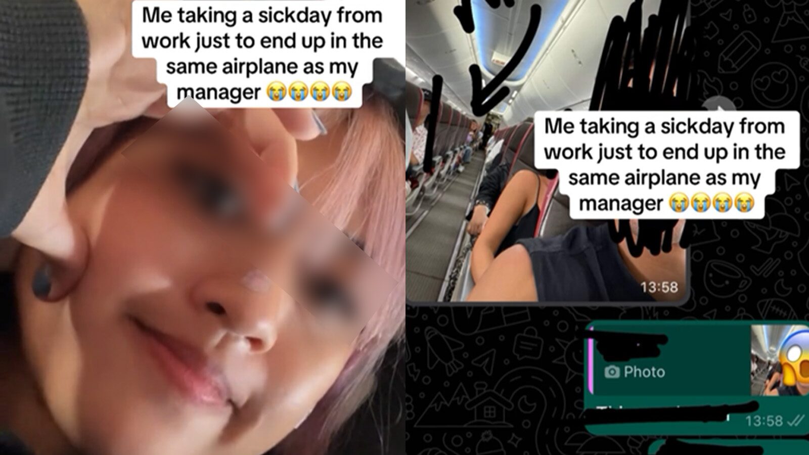 “ฉันลาป่วยเพื่อมาอยู่บนเครื่องบินลำเดียวกับผู้จัดการของฉันเนี่ยนะ สั้นๆ ก็คือ ตอนที่ฉันกำลังเข้าแถว ฉันเห็นคนหน้าคุ้นๆ เดินมาหาฉันแล้วเรียกชื่อฉัน” แม้ในตอนแรกเธอจะตกใจและอับอาย แต่ต่อมาเธอกับหัวหน้าก็สามารถ “หัวเราะด้วยกัน” และ “พูดคุยกันจนจบเที่ยวบิน” นอกจากนี้หัวหน้ายังถ่ายรูปเธอและส่งมาให้เธอดูอีกด้วย