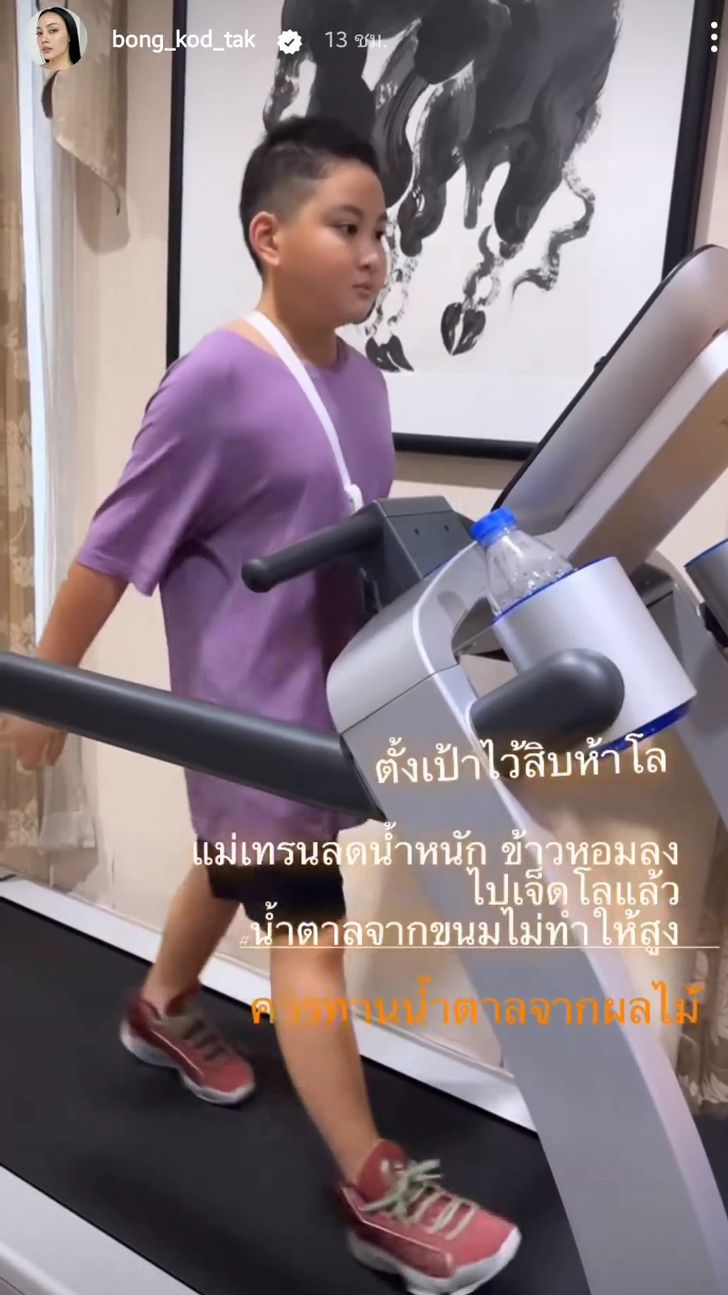 ซึ่งโปรเจกต์ดังกล่าวที่ว่านี้ก็คือ การออกกำลังกายลดน้ำหนักเพื่อพัฒนาบุคลิกภาพ และเสริมสุขภาพร่างกายให้แข็งแรง โดยเป็นคลิปขณะ น้องข้าวหอม ใช้เวลาเดินบนลู่วิ่งภายใต้การดูแลอย่างใกล้ชิดของคุณแม่ นอกจากนั้นแล้ว ตั๊ก บงกช ยังเขียนแคปชั่นบอกเล่ารายละเอียดเพิ่มเติมถึงเป้าหมายและวิธีคุมอาหาร ของ น้องข้าวหอม โดยมีเจ้าตัวทำหน้าที่เป็นเทรนเนอร์ พร้อมซัพพอร์ตลูกชายสุดที่รักอย่างเต็มที่