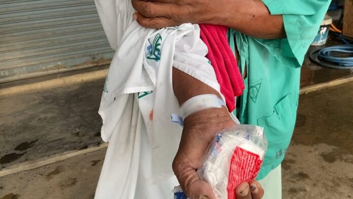 จากการตรวจสอบคนไข้ที่พบคือคุณลุงชัย (นามสมมติ) อายุประมาณ 65 ปี โดยสภาพที่พบคือสวมชุดคนไข้ของทางโรงพยาบาล ไม่สวมรองเท้า มีผ้าห่มสีขาวของโรงพยาบาลคลุมตัวอยู่ มือถือถุงขนมและเครื่องดื่ม ตรวจสอบพบว่าที่ผ้าห่มมีรอยเลือด เมื่อพลเมืองดีสอบถามว่า รอยเลือดที่ติดในเสื้อคืออะไร ลุงชัย เปิดแผลที่แขน และบอกว่าหกล้ม แต่เห็นว่าที่ข้อมือยังสวมสายรัดของโรงพยาบาลอยู่ครบ