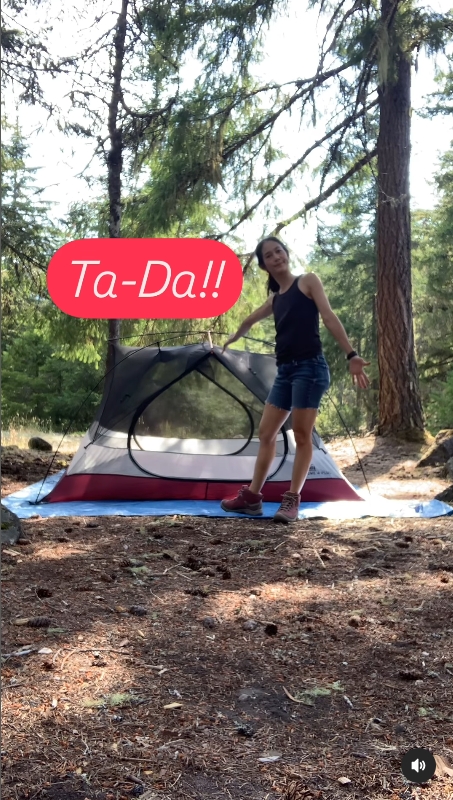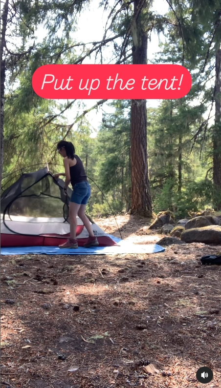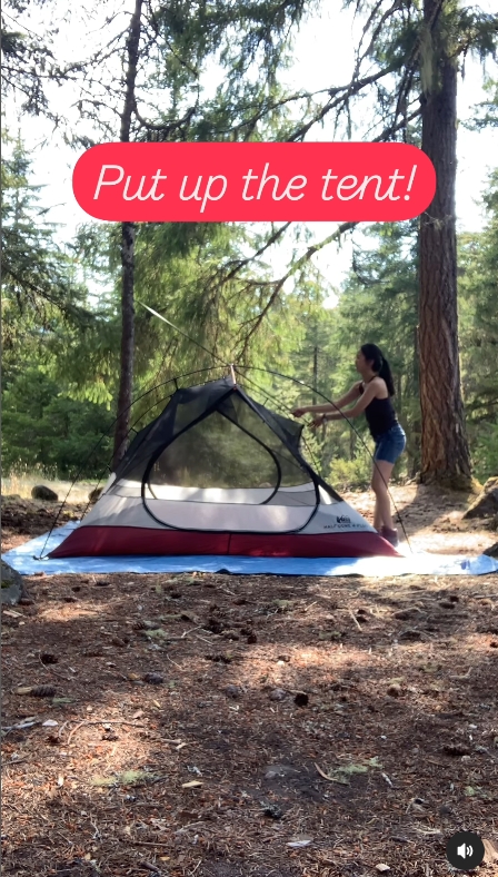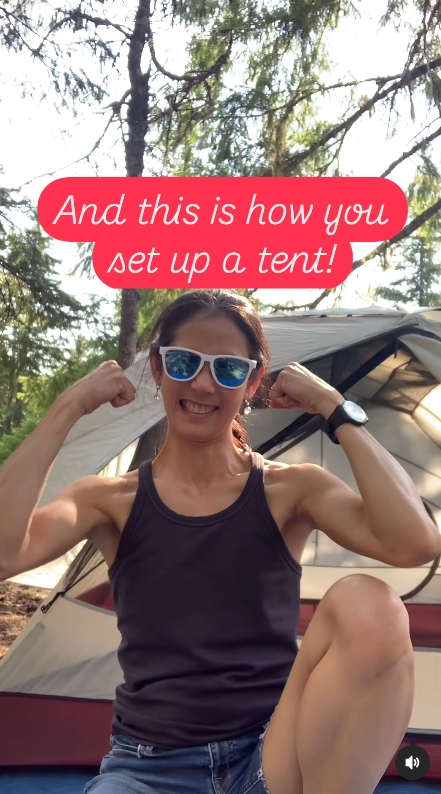 ซึ่งในคลิปก็ยังได้สอนกางเต็นท์ให้ดูกันด้วย กับแคปชั่นว่า “ผู้หญิงก็กางเต๊นท์เองคนเดียวได้! คุมแม่ฉายเดี่ยวพาสองสาวเข้าป่าแคมปิ้งมาหลายรอบละ วันนี้จะมาสอนกางเต๊นท์ให้ดูกันจ้ะ”