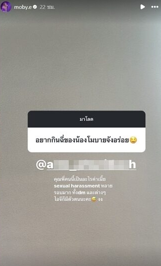 แต่แล้วตัวสาวโมบายล์ ก็ต้องเจอคำถามสุดพีค ที่ถามว่า “อยากกินฉี่ของน้องโมบายจังอร่อย” โมบายล์ จึงมาตอบว่า “คุณพี่คนนี้เป็นอะไรคะเนี้ย sexual harassment หลาย รอบมาก ทั้งdm และต่างๆ ไอจีก็มีตัวตนนะคะ งง”