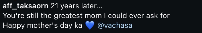 เมื่อสาวแอฟได้โพสต์รูปลงในไอจีส่วนตัว เป็นโมเมนต์สุดน่ารักกับคุณแม่ และต้องขอบอกเลยว่าเวลาผ่านมา 21 ปีแล้ว แต่ความสวยความสาวทุกอย่างยังเหมือนเดิมไม่มีเปลี่ยน งานนี้ทำเอาชาวเน็ตแห่เข้ามาคอมเม้นต์ชื่นชมทั้งความสวยคุณแม่และคุณลูกกันอย่างสนั่นหวั่นไหว