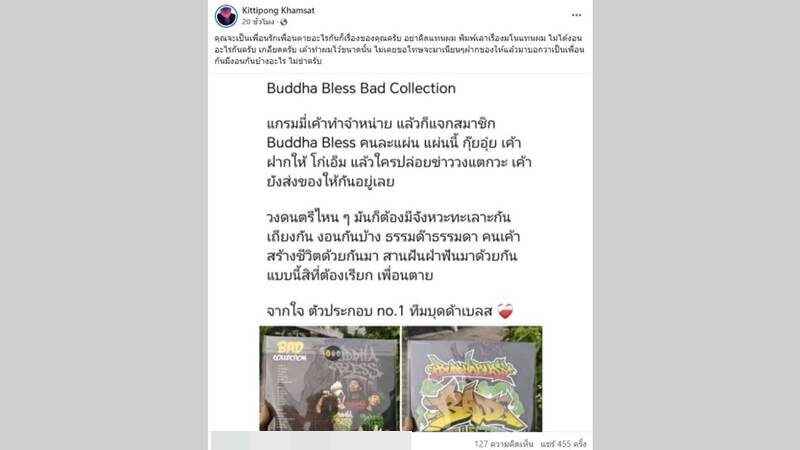 ทำเอาโซเชียลเดือด ๆ เมื่อมีผู้ใช้เฟซบุ๊กรายหนึ่ง โพสต์ภาพแผ่น Vinyl Buddha Bless Bad Collection พร้อมเขียนข้อความเชิงแก้ข่าวลือเรื่องสมาชิกในวง บุดด้าเบลส มีปัญหาแตกคอกัน โดยมีใจความว่า