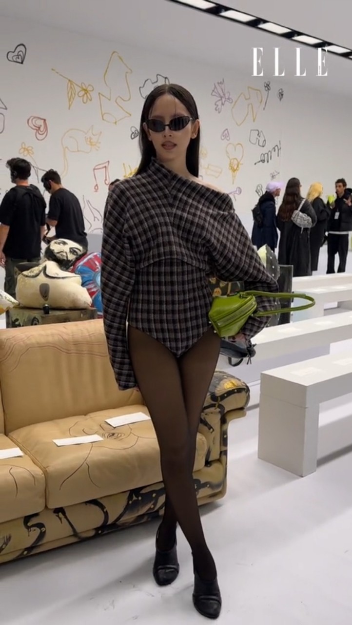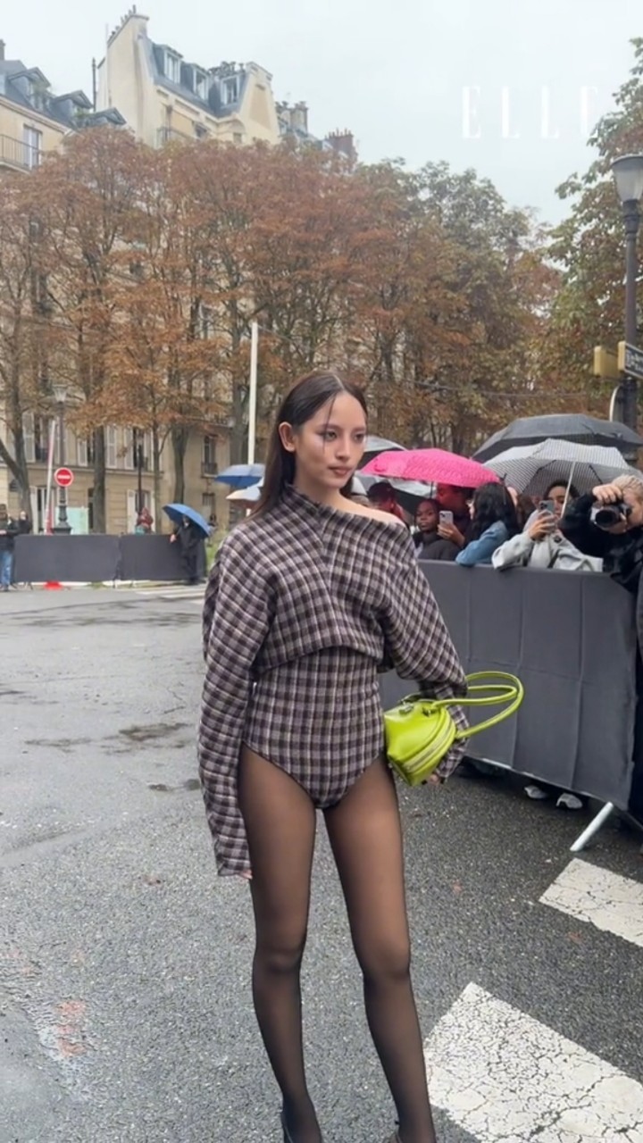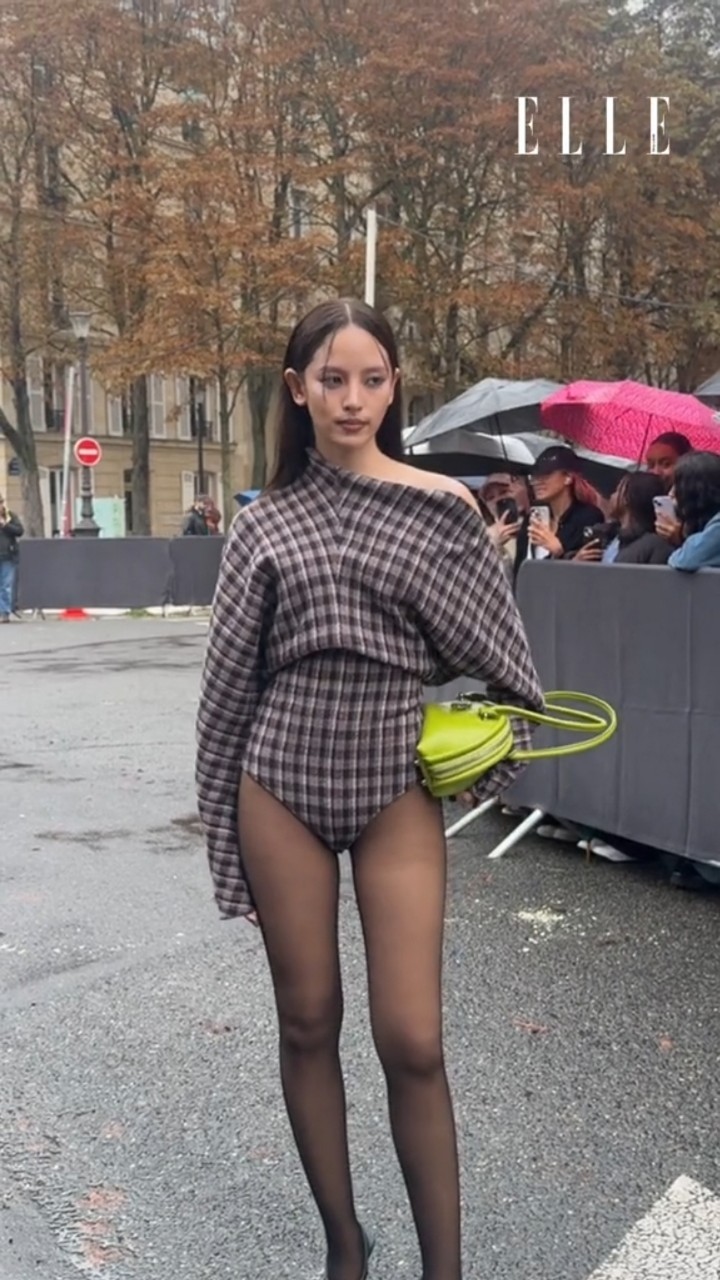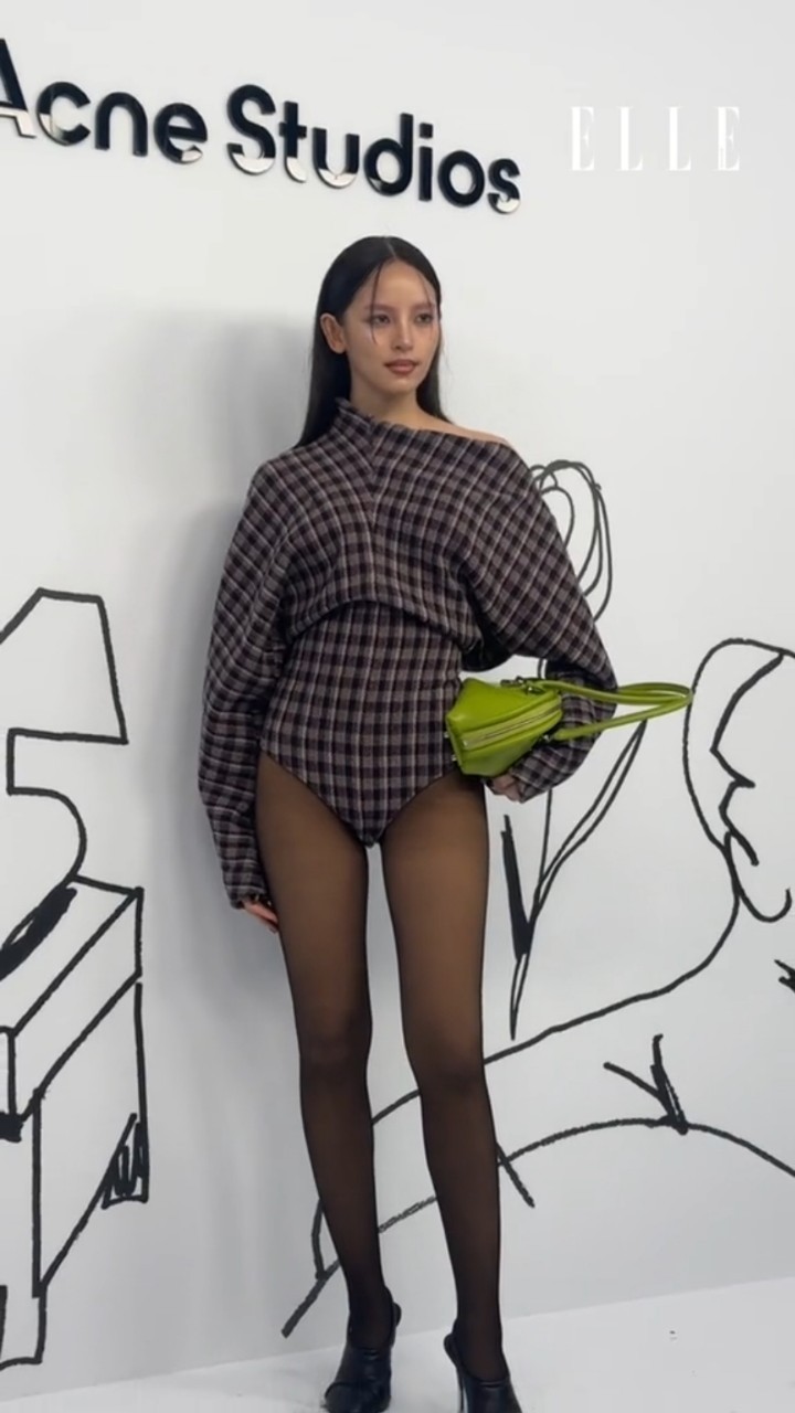 ซึ่งท่อนบนเป็นแขนยาวปกปิดไปทั่วเรือนร่าง เผยให้เห็นเพียงแค่การปาดไหล่หนึ่งข้าง เรียกน้ำย่อยแบบกรุบ ๆ แต่ที่ทำเอาต้องฮือฮากันสุดๆ คงหนีไม่พ้นท่อนล่างที่เป็นกางเกงเว้าสูงปรี๊ด เปิดเรียวขายาวๆ ที่ทำเอาละสายตาไม่ได้เลยจริงๆ