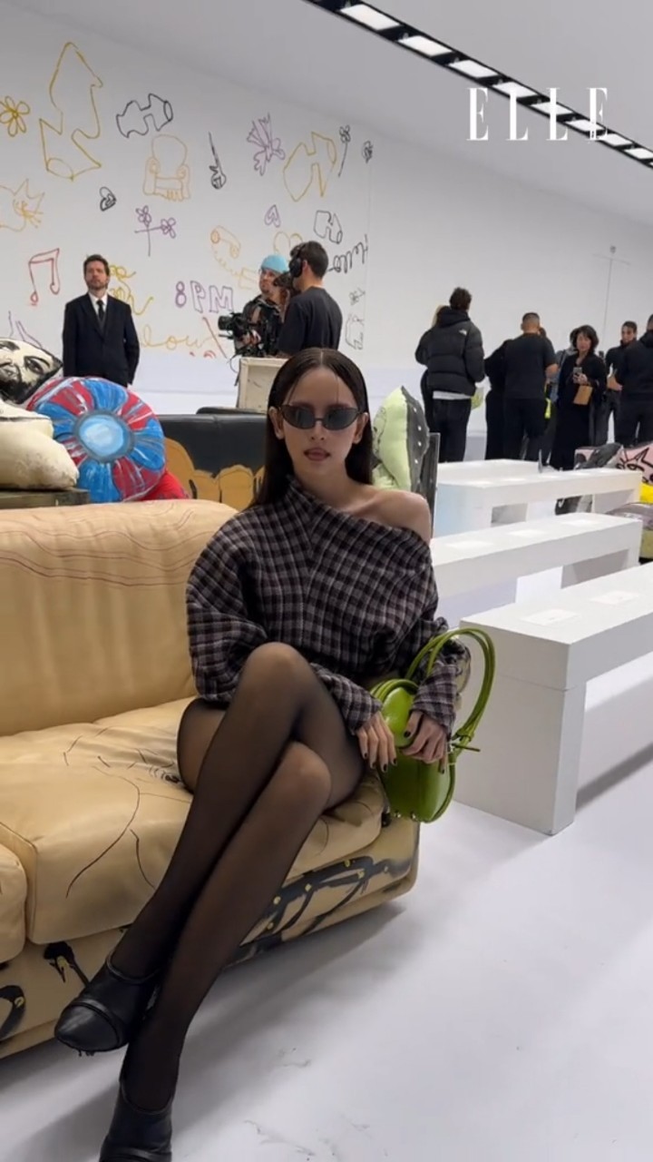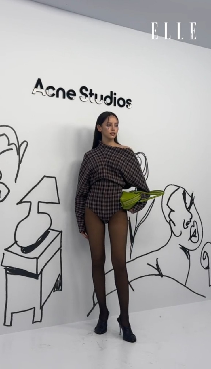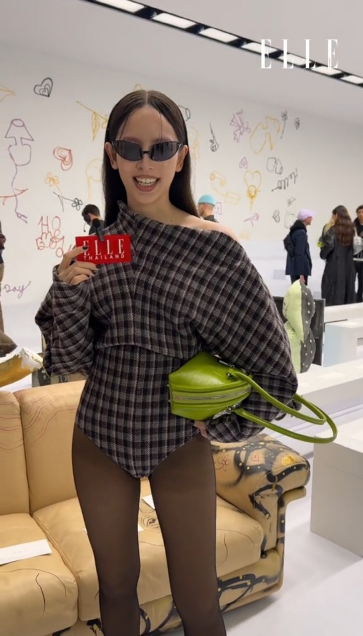 ซึ่งท่อนบนเป็นแขนยาวปกปิดไปทั่วเรือนร่าง เผยให้เห็นเพียงแค่การปาดไหล่หนึ่งข้าง เรียกน้ำย่อยแบบกรุบ ๆ แต่ที่ทำเอาต้องฮือฮากันสุดๆ คงหนีไม่พ้นท่อนล่างที่เป็นกางเกงเว้าสูงปรี๊ด เปิดเรียวขายาวๆ ที่ทำเอาละสายตาไม่ได้เลยจริงๆ