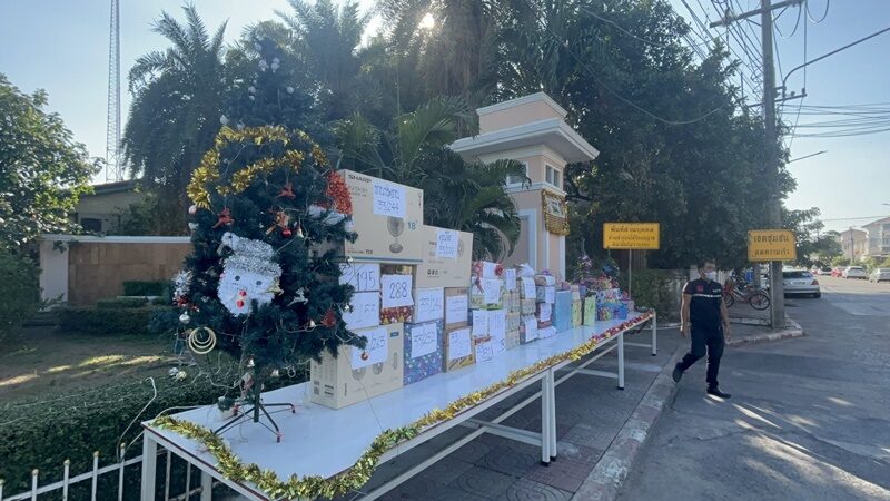 วันที่ 18 ธ.ค.67 ผู้สื่อข่าวรายงานว่าที่หมู่บ้านภัสสร 1 หมู่ 4 ถนนเลียบคลองสาม ต.คลองสาม อ.คลองหลวง จ.ปทุมธานี บริเวณด้านหน้าหมู่บ้านได้มีการตกแต่งด้วยต้นคริสต์มาสต้นใหญ่ที่สุดในคลองสามอย่างสวยงาม และบริเวณด้านซ้ายมือตรงประตูเข้าหมู่บ้านพบกองของขวัญจำนวนมาก ที่มีการติดชื่อ และเลขที่บ้านของลูกบ้านเอาไว้ด้วย โดยของขวัญแต่ละชิ้นจะมีหลายอย่างทั้งพัดลม จักรยาน ขนมต่างและอื่นๆ อีกมากมาย ซึ่งลูกบ้านบางรายไม่ได้ให้ของขวัญ แต่จะมีการมอบเงินโบนัสให้กับ รปภ.มากสุดถึงหลักหมื่นก็มี