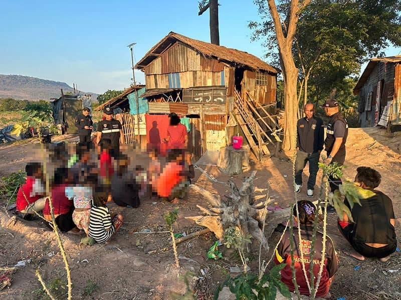 เจ้าหน้าที่จึงนำกำลังบุกเข้าตรวจค้น สามารถควบคุมตัวชาวกัมพูชาไว้ได้จำนวน 15 คน เป็น ผู้ใหญ่ 8 คน (ชาย 4,หญิง 4) และเด็กอีก 7 คน รวม 6 ครอบครัว ประกอบด้วยนายทิต อายุ 58 ปี ,นายเจีย อายุ 33 ปี, นายออย อายุ 25 ปี,นายนู อายุ 20 ปี, นางวี อายุ 56 ปี, นางตา อายุ 26 ปี, นางนา อายุ 22 ปี, นางเฮง อายุ 20 ปี พร้อมลูกๆซึ่งเป็นผู้ติดตามจำนวน 7 คน ตรวจสอบไม่มีหนังสือเดินทางหรือเอกสารอนุญาตทำงานในประเทศไทย แต่อย่างใด