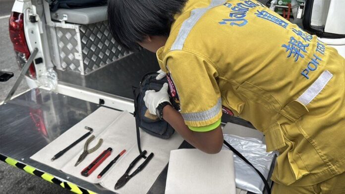 วันที่ 16 ม.ค.2568 ร.ต.ท.ตรัยคุณ นรรัตน์ รองสว.(สอบสวน) สภ.บางแก้ว สมุทรปราการ รับแจ้งเหตุพบชายถูกไฟฟ้าชอร์ตเสียชีวิต ริมถนนเทพรัตน เลนด่วน ขาเข้า กม.15 หลังตู้ทางหลวง จึงพร้อมด้วย มูลนิธิป่อเต็กตึ้ง รุดตรวจสอบ