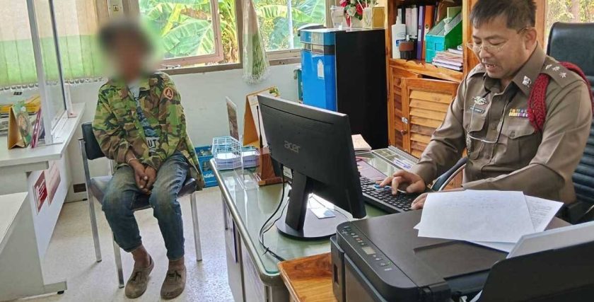 จากนั้นจึงใช้มีดทำการชำแหละเนื้อและชิ้นส่วนควายใส่ถุงปุ๋ย เพื่อเตรียมกลับไปกินที่บ้าน สักพักได้ยินเสียงคนออกตามหาควาย จึงวิ่งหลบหนีเข้าไปในป่าและกลับบ้าน กระทั่งมีหมายเรียกจากตำรวจ จึงเดินทางมามอบตัวในวันนี้