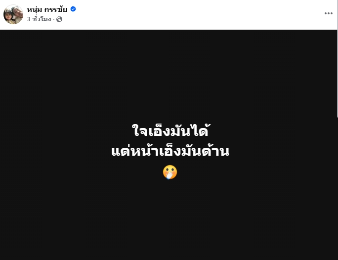 ออกมาโพสต์ข้อความแบบแร๊งถึงใจเลย สำหรับพิธีกรชื่อดัง หนุ่ม กรรชัย ที่ได้ตัดสินใจเขียนข้อความสั้นๆ ผ่านทางเฟซบุ๊กส่วนตัวไว้ว่า “ใจเอ็งมันได้ แต่หน้าเอ็งมันด้าน” งานนี้ทำเอาคอมเมนต์จากแฟนๆ เข้ามาแสดงความคิดเห็นกันอย่างรัวๆ