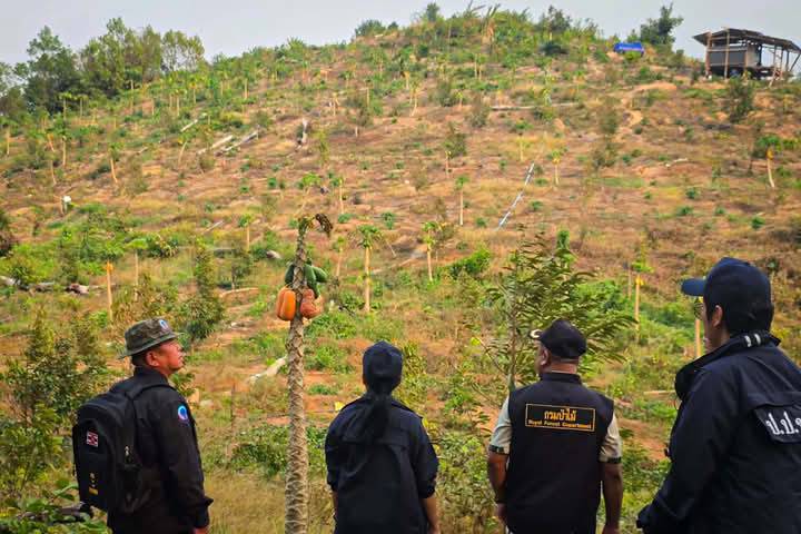 ซึ่งเชื่อว่าเป็นกลุ่ม “นายทุนผู้มีอิทธิพลรายใหญ่” เนื่องจากสภาพป่าเดิมถูกปรับพื้นที่เป็นสวนทุเรียนทั้งหมด รวมไปถึงพื้นที่เกาะกลางน้ำ ก็ถูกบุกรุกปรับเป็นสวนทุเรียนทั้งหมดเช่นเดียวกัน และขณะที่เจ้าหน้าที่ลงพื้นที่ตรวจสอบยังพบว่า สวนทุเรียน ยังคงมีการปรับปรุงพื้นที่ทำสวนอยู่ นอกจากนี้ยังพบตัวอาคารบ้านพักอีก 2 หลัง เบื้องต้นจุดนี้ พบการบุกรุกพื้นที่ชลประทานทั้งหมด