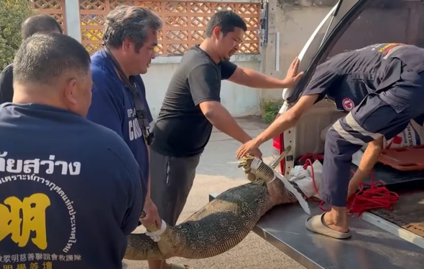 นายอนุวัฒน์ ภัทรจิตตานันท์ เจ้าหน้าที่กู้ภัยมูลนิธิสว่างเบญจธรรมสมุทรสงคราม กล่าวว่า ได้รับแจ้งจากประชาชนขอความช่วยเหลือจับตัวเหี้ย ตอนแรกมากันแค่ 3 คน พอเห็นตัวใหญ่มาก ไม่เคยเจอใหญ่ขนาดนี้ อีกทั้งมีท่าทางดุร้าย และมีแรงมาก สามารถ พังประตูร้านซึ่งทำด้วยแผ่นเรียบ แตกเสียหาย ประเมินแล้วกำลังไม่พอจึงต้องขอกำลังเสริมมารวม 7 คน มาสนับสนุน อย่างไรก็ตามฝากเตือนประชาชนหากพบเจอตัวเหี้ยให้แจ้งเจ้าหน้าที่ หรือแจ้ง 191 เพื่อความปลอดภัยในชีวิตของตนและสัตว์เลี้ยง