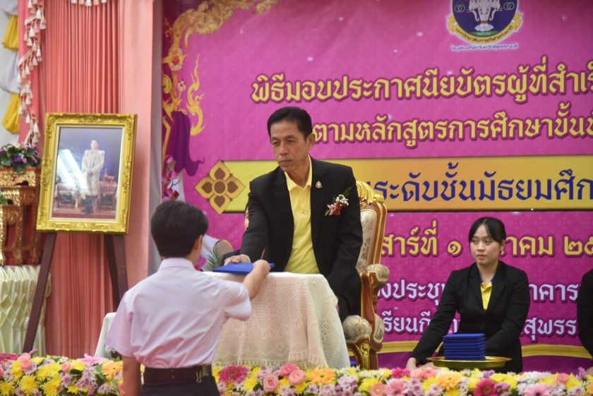 วันนี้ ( 5 มี.ค.68) นายวิษณุ ไล่ชะพิษ อธิการบดีมหาวิทยาลัยการกีฬาแห่งชาติ เป็นประธานในพิธีพิธีมอบประกาศนียบัตรนักเรียน ชั้น ม.6 โดยมีนางสมจิต บุญคงเสน ผอ.โรงเรียนกีฬาจังหวัดสุพรรณบุรี คณะครู ผู้ปกครอง ชมรมผู้ปกครอง ร่วมงาน พร้อมเผยว่า โรงเรียนกีฬาจังหวัดสุพรรณบุรี เป็นโรงเรียนที่ส่งเสริมนักเรียนที่มีความสามารถพิเศษด้านกีฬาควบคู่กับการศึกษา เปิดสอนกีฬา 16 ชนิด ทั้ง กรีฑา ยกน้ำหนัก ยิมนาสติก จักรยาน เทนนิส ยิงปืน มวยปล้ำ วูซู ว่ายน้ำ เซปักตะกร้อ เบสบอล ซอฟท์บอล ฟุตบอล วอลเลย์บอล มวยไทย มวยสากล ยูโดยูยิตสู และไอซ์สเก็ต ปัจจุบันมีนักเรียนได้รับการคัดเลือกเป็นตัวแทนทีมชาติไทย จำนวน 61 คน มีผลงานระดับชาติ และนานาชาติ