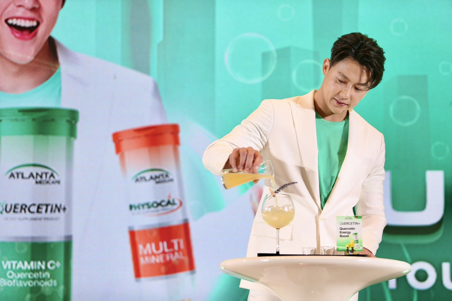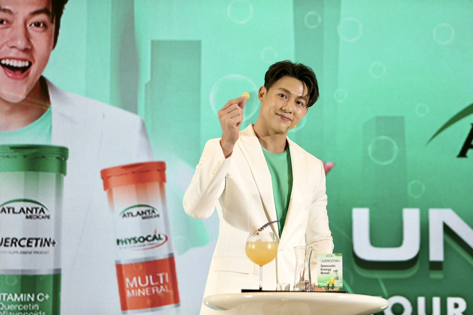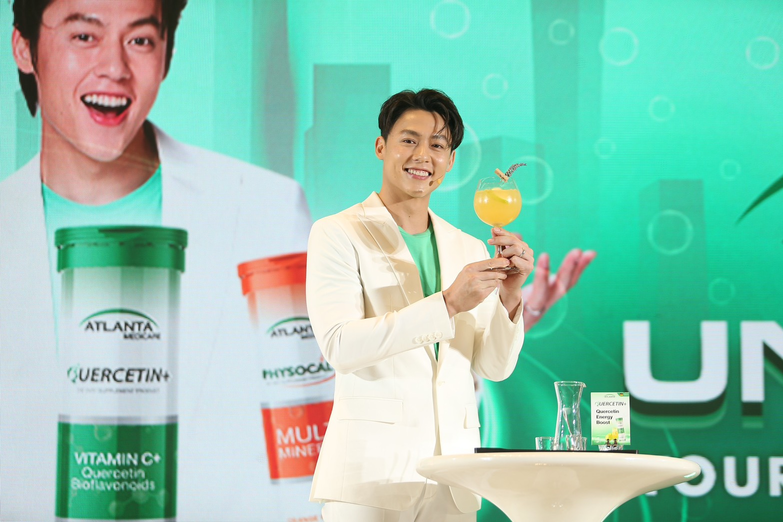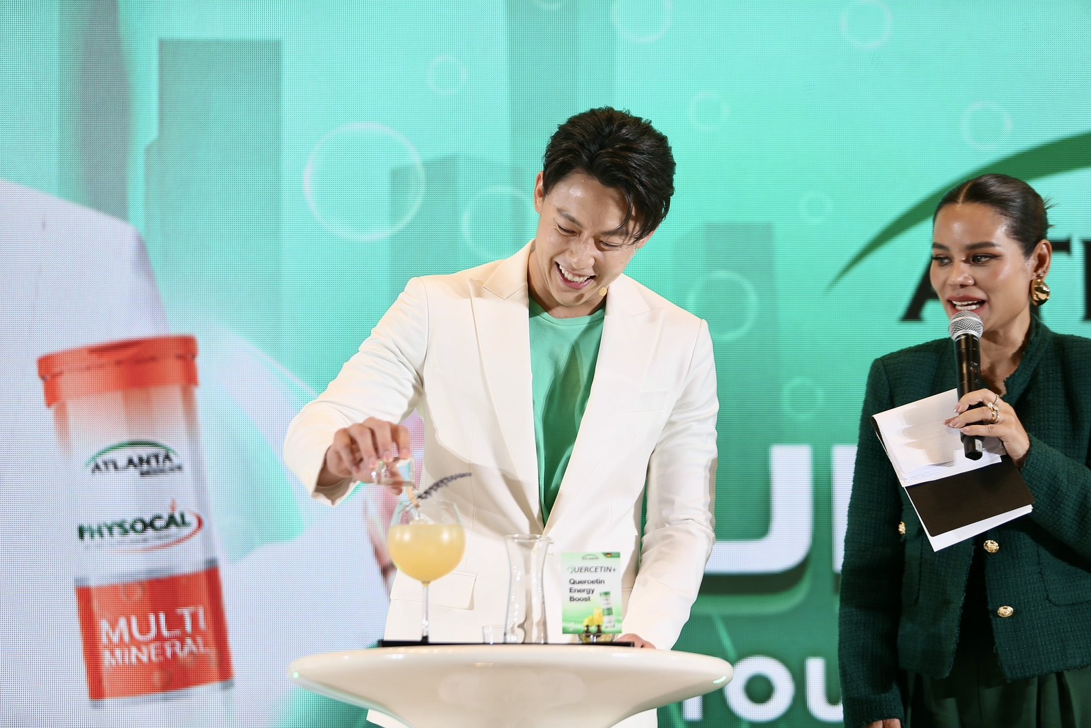 บรรยากาศภายในงานเต็มไปด้วยความสดชื่น รอยยิ้ม เสียงหัวเราะ และความสนุกกันสุดๆ กับกิจกรรมที่แอตแลนต้าเตรียมมาเอาใจแฟน ๆ กันแบบจัดเต็ม เริ่มตั้งแต่ TVC ภาพยนตร์โฆษณาชุดใหม่ที่เปิดให้รับชมพร้อมกันเป็นครั้งแรก ก่อนที่หมากจะปรากฏตัวพร้อมรอยยิ้มกระชากใจที่เปี่ยมเอนเนอร์จี้ขั้นสุด เรียกเสียงกรี๊ดจากแฟน ๆ ได้ถล่มทลาย พร้อมร่วมแชร์เคล็ดลับการดูแลสุขภาพและรูปร่างให้เพอร์เฟกต์แบบฉบับหนุ่มฟิตที่ชื่นชอบการออกกำลังกาย รวมถึงกิจกรรม Unlock Your Everyday ที่ให้ทุกคนได้สนุกไปกับมุมถ่ายรูปเช็คอินสุดคูล ทั้งโฟโต้บูธและดิสเพลย์สีสันสดใส และของรางวัลสุดเอ็กซ์คลูซีฟมากมาย พร้อมเพิ่มความสเปเชียลไปอีกขั้นกับกิจกรรม Mini-Lab Experience ที่เปิดประสบการณ์รูปแบบใหม่ของเมนู Lifestyle Wellness Drink ด้วยการทดลองส่วนผสมนานาชนิด ผสานกับเทคโนโลยีล้ำสมัยของวิตามินเม็ดฟู่อย่างลงตัว เพราะแอตแลนต้าเชื่อว่าสุขภาพที่ดีเริ่มต้นจากสิ่งเล็ก ๆ ในชีวิตประจำวัน
