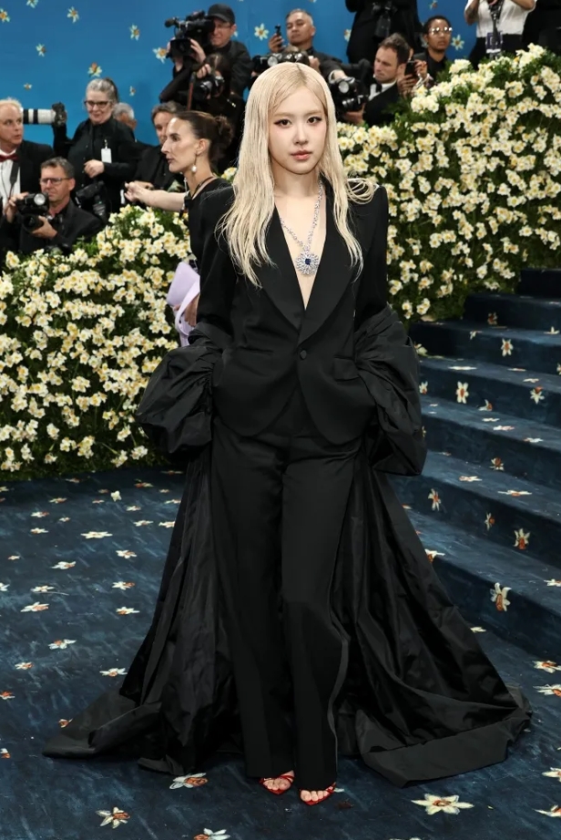 โรเซ่ มาถึงเป็นคนสุดท้ายของวงในช่วงท้ายพรมแดง แน่นอนว่าการเป็นแบรนด์แอมบาสเดอร์ของแซงต์ โลรองต์ เธอจึงไม่ทำให้ผิดหวัง ด้วยการสวมใส่ชุดของแบรนด์ เป็นชุดทักซิโด้สั่งตัดซึ่งเข้ากับธีมของงานในคืนนี้ พร้อมรองเท้าส้นสูงสีแดง ผสมผสานกับเครื่องประดับของ Tiffany & Co ได้อย่างลงตัว