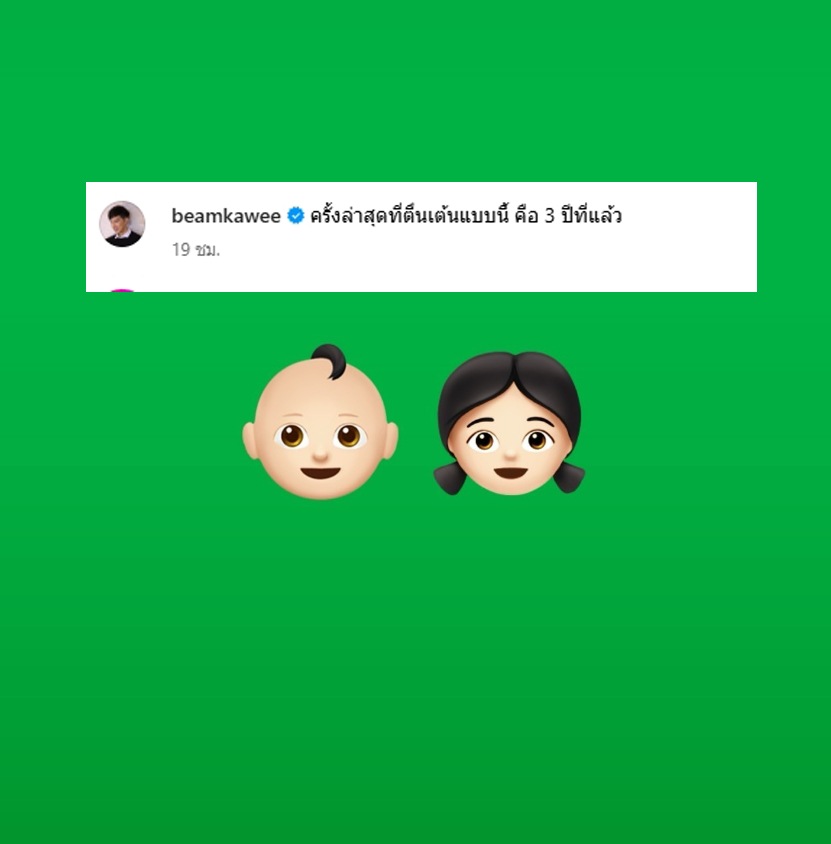 ทำเอาหลายคนต่างต้องลุ้นไปตามกันอีกรอบ บีม กวี คุณพ่อลูก 4 โพสต์อีโมจิรูปเด็กผู้ชายและเด็กผู้หญิง พร้อมแคปชันลงในอินสตาแกรมของตัวเองว่า “ครั้งล่าสุดที่ตื่นเต้นแบบนี้ คือ 3 ปีที่แล้ว” เอ๊ะหรือว่าเร็วๆนี้จะมีข่าวดี เร็วๆนี้