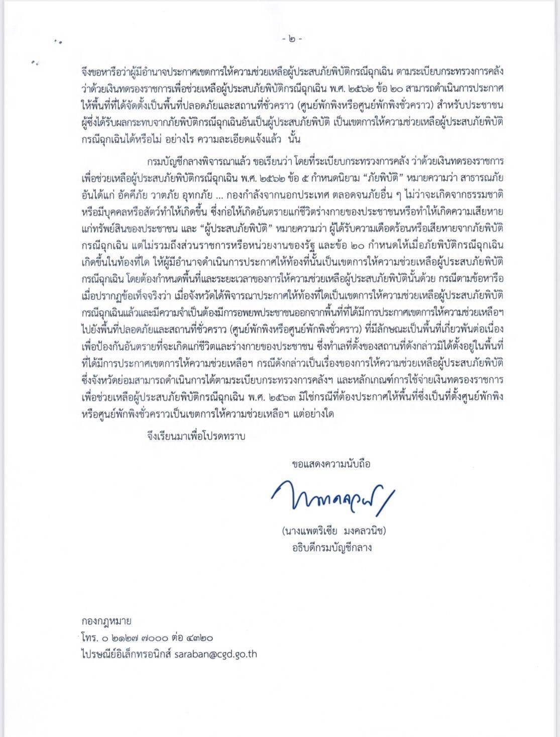 พร้องส่งหนังสือหารือ เรื่อง ขอหารือแนวทางการประกาศเขตการให้ความช่วยเหลือผู้ประสบภัยพิบัติกรณีฉุกเฉิน ตามระเบียบกระทรวงการคลัง ว่าด้วยเงินทดรองราชการเพื่อช่วยเหลือผู้ประสบภัยพิบัติกรณีฉุกเฉิน พ.ศ. ๒๕๖๒ ถึง อธิบดีกรมป้องกันและบรรเทาสาธารณภัย มีรายละเอียดดังนี้