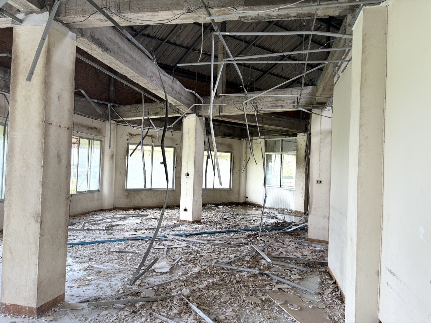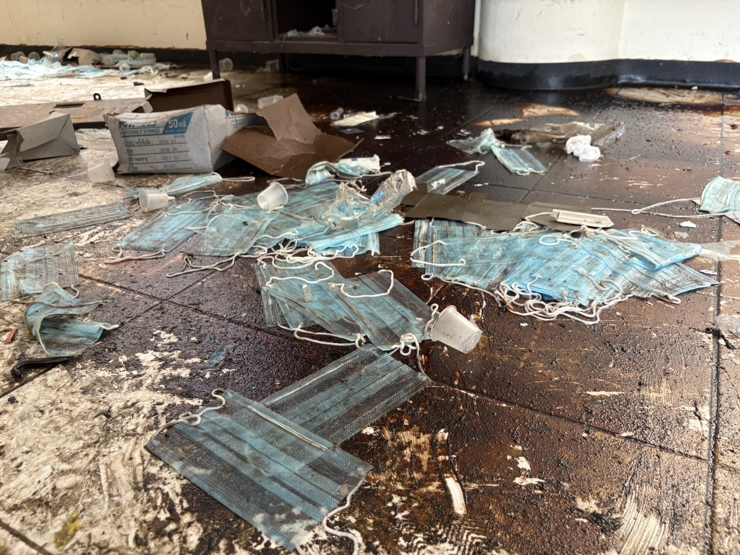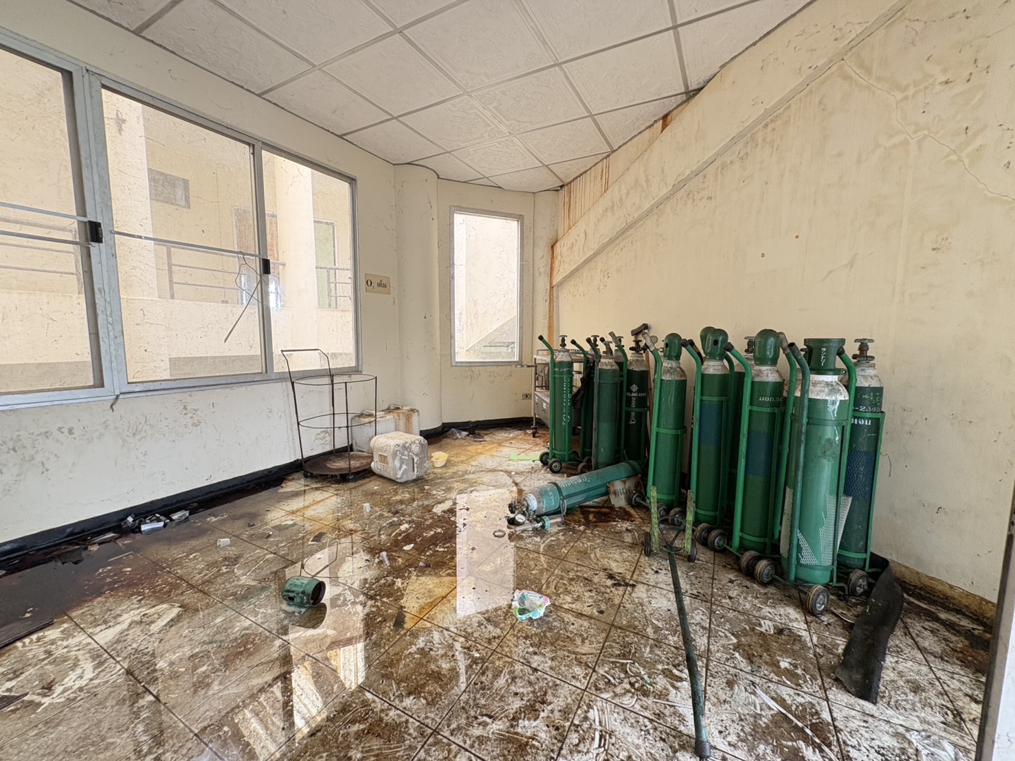 ชั้นสองพบห้องเปล่าๆ สภาพเละ มีเศษกระจก เศษปูนแตกละเอียดหล่นอยู่ตามพื้น บางห้องเคยเป็นที่พักสำหรับผู้ป่วยติดเชื้อ และพบหน้ากากอนามัยหล่นเกลื่อนอยู่ภายในห้อง
