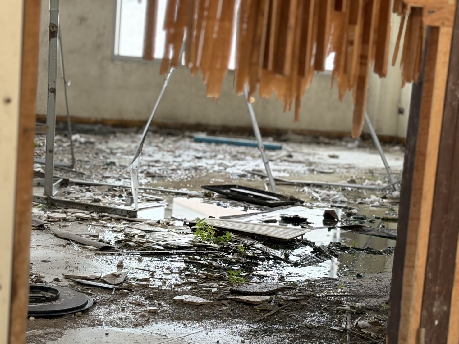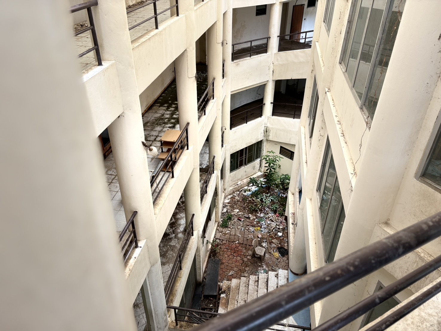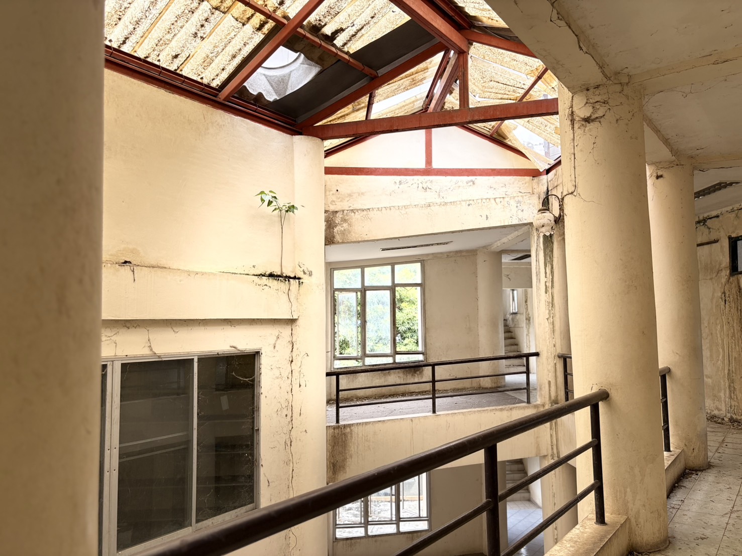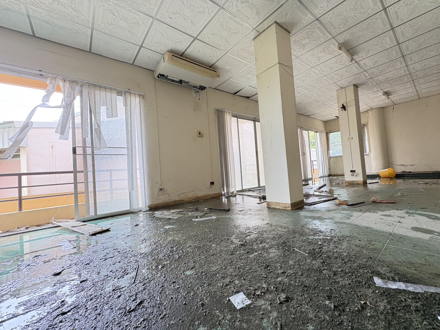 ชั้นสองพบห้องเปล่าๆ สภาพเละ มีเศษกระจก เศษปูนแตกละเอียดหล่นอยู่ตามพื้น บางห้องเคยเป็นที่พักสำหรับผู้ป่วยติดเชื้อ และพบหน้ากากอนามัยหล่นเกลื่อนอยู่ภายในห้อง