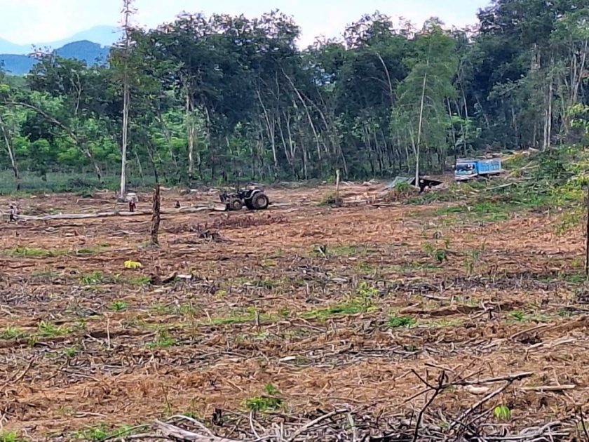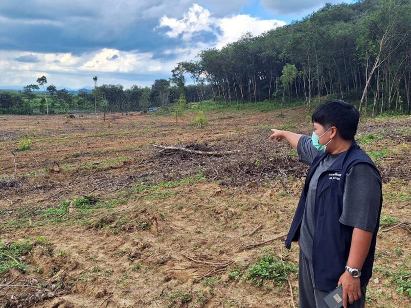 ผู้สื่อข่าวจึงลงพื้นที่ตรวจสอบ พบพื้นที่ถูกตัดไม้เป็นวงกว้างกว่า 50 ไร่ มีทั้งแคมป์แรงงานต่างด้าวหลายหลัง รถบรรทุกสิบล้อบรรทุกไม้ยาง และแรงงานต่างด้าวใช้รถไถลากจูงไม้ขึ้นรถ เมื่อเห็นผู้สื่อข่าวต่างพากันแตกฮือวิ่งหนี เพราะเข้าใจว่าเป็นเจ้าหน้าที่เข้ามาจับกุม