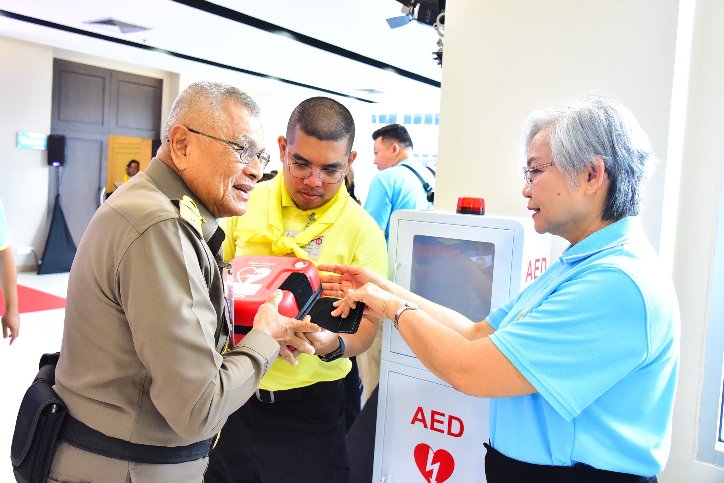 หากมีอาการเจ็บแน่นหน้าอกควรรีบพบแพทย์โดยเร็วที่สุด เพราะถ้าหัวใจขาดเลือดจนหัวใจหยุดทำงาน ผู้ป่วยจะหัวใจหยุดเต้นและหมดสติ หากผู้ป่วยหมดสติแล้ว ควรรีบทำการกดหน้าอกผู้ป่วย ติดเครื่องกระตุ้นหัวใจ AED และโทรเรียกรถพยาบาลที่สายด่วน 1669 ทันที สำหรับกระทรวงการพัฒนาสังคมและความมั่นคงของมนุษย์ (พม.) โดยกรมกิจการสตรีและสถาบันครอบครัว (สค.) ได้ให้ความสำคัญกับการเสริมสร้างศักยภาพของทุกคนในทุกระดับ เพื่อให้มีความพร้อมในการรับมือกับเหตุการณ์ไม่คาดฝันที่สามารถเกิดขึ้นได้ทุกเวลาและทุกสถานที่ ดังนั้นการมีความรู้และทักษะในการช่วยชีวิตขั้นพื้นฐาน และสามารถใช้เครื่อง AED ได้อย่างถูกต้องและทันท่วงที จึงเป็นสิ่งสำคัญที่สามารถช่วยชีวิตเพื่อนมนุษย์ได้อย่างแท้จริง โดยเฉพาะในเรื่องของการปฐมพยาบาลและการช่วยชีวิตเบื้องต้น กิจกรรมนี้ ถือเป็นโอกาสอันดีที่ผู้เข้าร่วมอบรมได้รับทั้งความรู้ ความเข้าใจ และประสบการณ์ตรงจากวิทยากรผู้เชี่ยวชาญ เพื่อนำไปประยุกต์ใช้ในชีวิตประจำวันหรือในหน้าที่ความรับผิดชอบได้อย่างมีประสิทธิภาพ