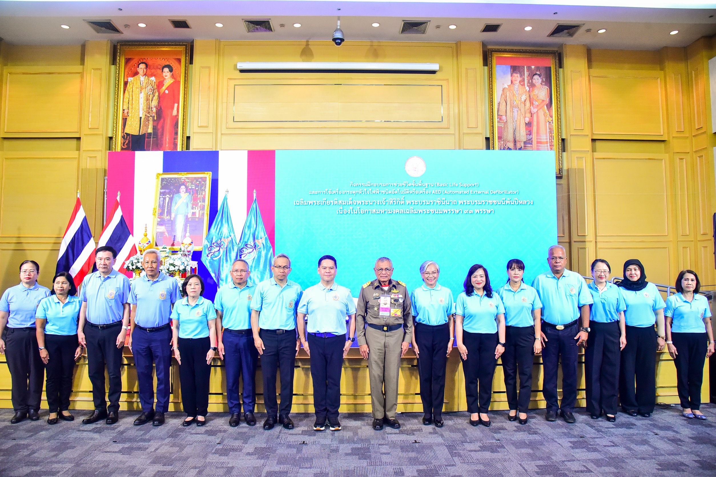 เมื่อวันที่ 29 สิงหาคม 2568 นายวราวุธ ศิลปอาชา รัฐมนตรีว่าการกระทรวงการพัฒนาสังคมและความมั่นคงของมนุษย์ (รมว.พม.) เป็นประธานเปิดกิจกรรมฝึกอบรม “การช่วยชีวิตขั้นพื้นฐาน (Basic Life Support) และการใช้เครื่องกระตุกหัวใจไฟฟ้าชนิดอัตโนมัติ หรือเครื่อง AED (Automated External Defibrillator) เฉลิมพระเกียรติสมเด็จพระนางเจ้าสิริกิติ์ พระบรมราชินีนาถ พระบรมราชชนนีพันปีหลวง เนื่องในโอกาสมหามงคลเฉลิมพระชนมพรรษา 93 พรรษา โดยมี นายอนุกูล ปีดแก้ว ปลัดกระทรวงการพัฒนาสังคมและความมั่นคงของมนุษย์ (ปลัด พม.) นางสาวแรมรุ้ง วรวัธ อธิบดีกรมกิจการสตรีและสถาบันครอบครัว คณะผู้บริหาร พม. และผู้แทนหน่วยงานที่เกี่ยวข้อง เข้าร่วม ที่ห้องประชุมปกรณ์ อังศุสิงห์ กระทรวงการพัฒนาสังคมและความมั่นคงของมนุษย์ โดยในงานมีการฝึกอบรมทั้งภาคทฤษฎี ภาคปฏิบัติ ได้รับเกียรติจากพลอากาศเอกสุบิน ชิวปรีชา กรมวังผู้ใหญ่ในพระองค์ และคณะวิทยากรจาก ศูนย์อำนวยการใหญ่จิตอาสาพระราชทาน ในหัวข้อการฝึกการช่วยเหลือภาวะทางเดินหายใจอุดกั้น (Chocking) , การช่วยฟื้นคืนชีพขั้นพื้นฐาน (CPR) และการใช้เครื่องกระตุกหัวใจไฟฟ้าชนิดอัตโนมัติ (AED) อีกทั้งมีการทดสอบและประเมินผลหลังการฝึกอบรม