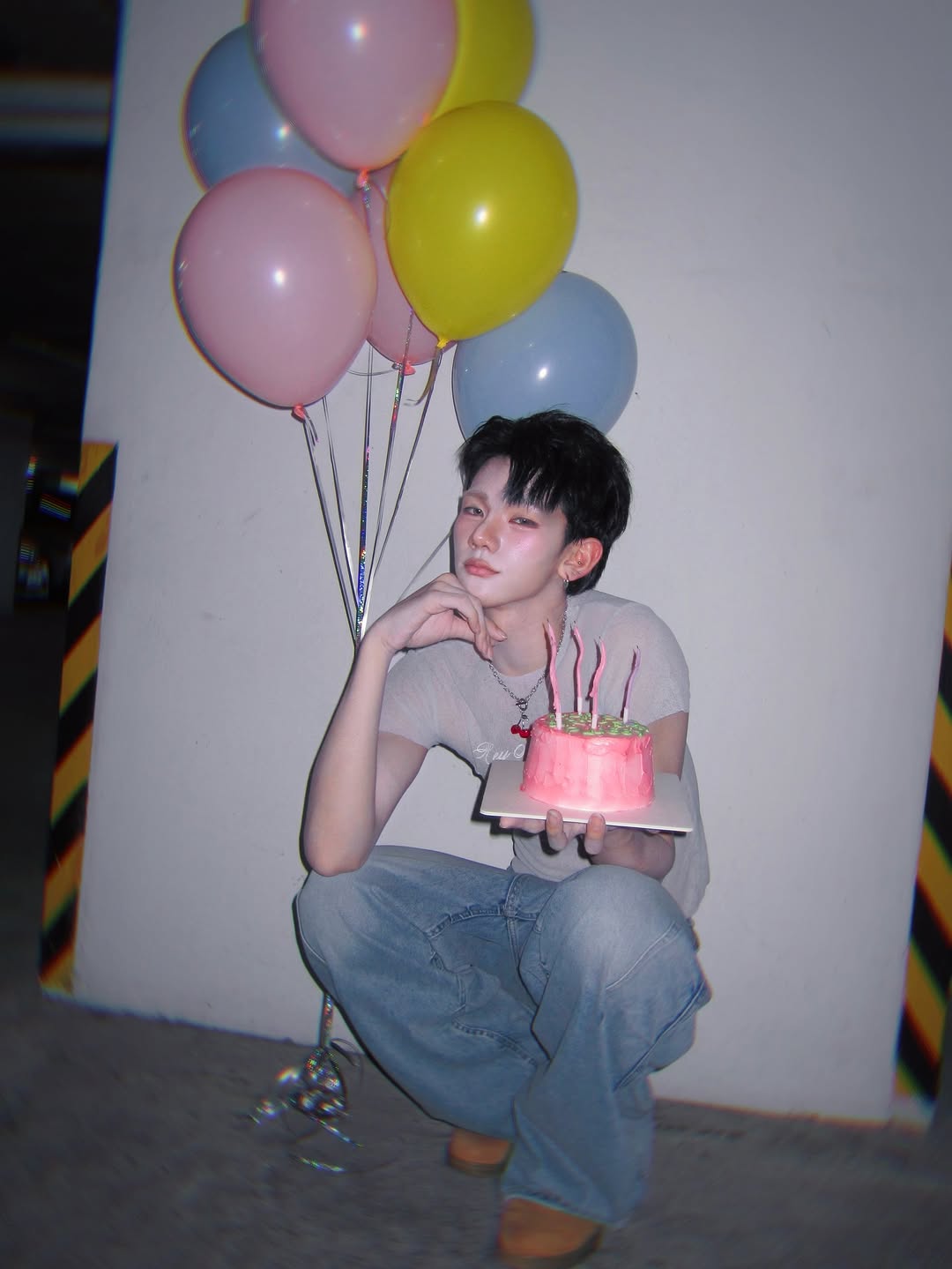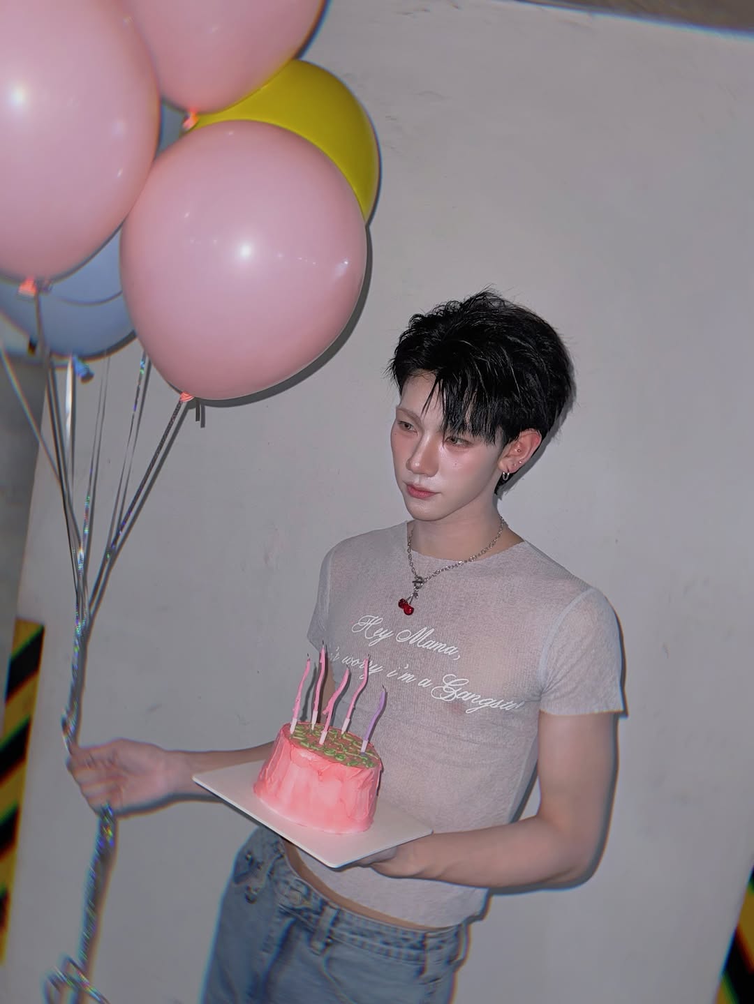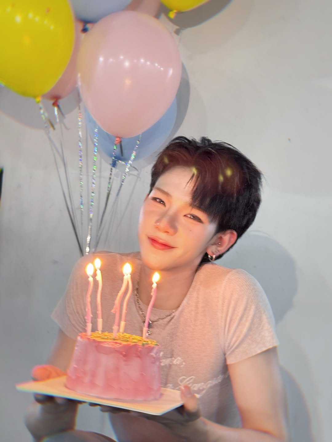 งานนี้มาแบบจัดเต็ม ทั้งเค้กชมพูหวานแหวว เทียน 4 เล่มปักสว่างวับ ✨ พร้อมลูกโป่งหลากสีเพิ่มบรรยากาศฟีลปาร์ตี้เบาๆ ทำเอาแฟนๆ ใจละลายยิ่งกว่ากินเค้กจริงๆ 🍰🎈