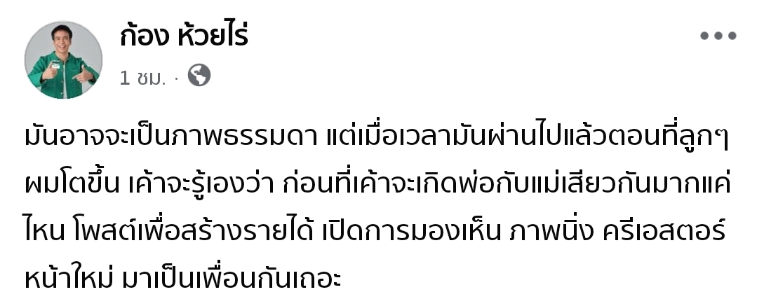 แต่ที่ทำเอาหลายคนซึ้งจนต้องยิ้มตาม คือแคปชั่นที่หนุ่มก้องได้เขียนบรรยายความในใจไว้ว่า…