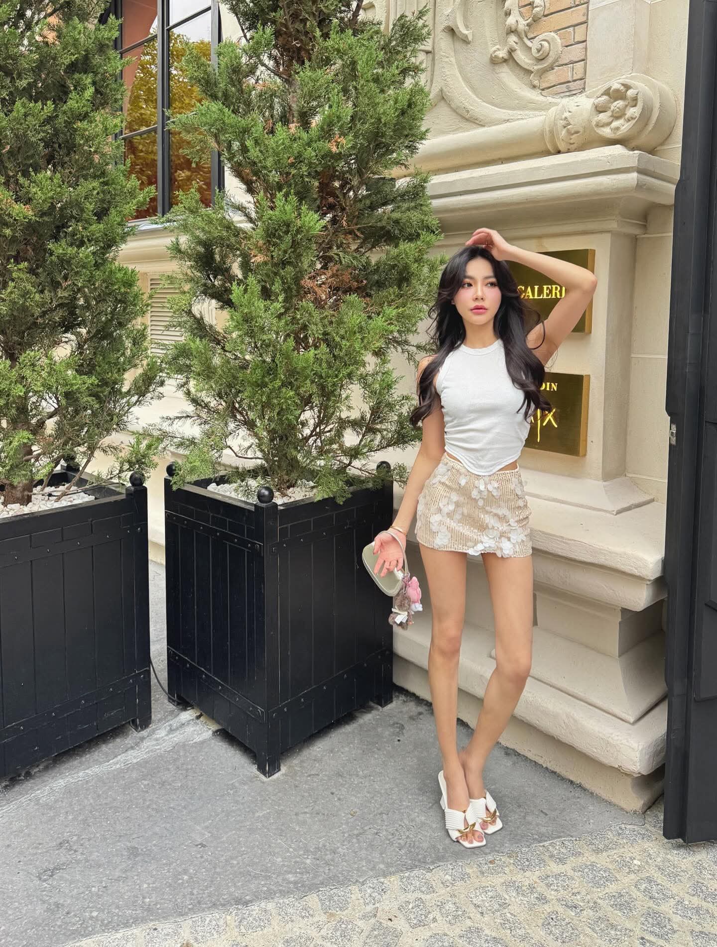 ถึงแม้จะมาในชุดชิลล์ๆ เสื้อครอปสีขาวกับกระโปรงสั้นมุ้งมิ้ง หรือจะเป็นเสื้อยืดสีขาวกับกางเกงขาสั้นสีขาว แต่ความเป๊ะปังระดับตัวแม่ก็ยังคงชัดเจนไม่มีแผ่ว ทั้งหุ่นสุดเฟิร์มและผิวขาวใสแบบสุขภาพดีที่ดูยังไงก็ไม่เบื่อ