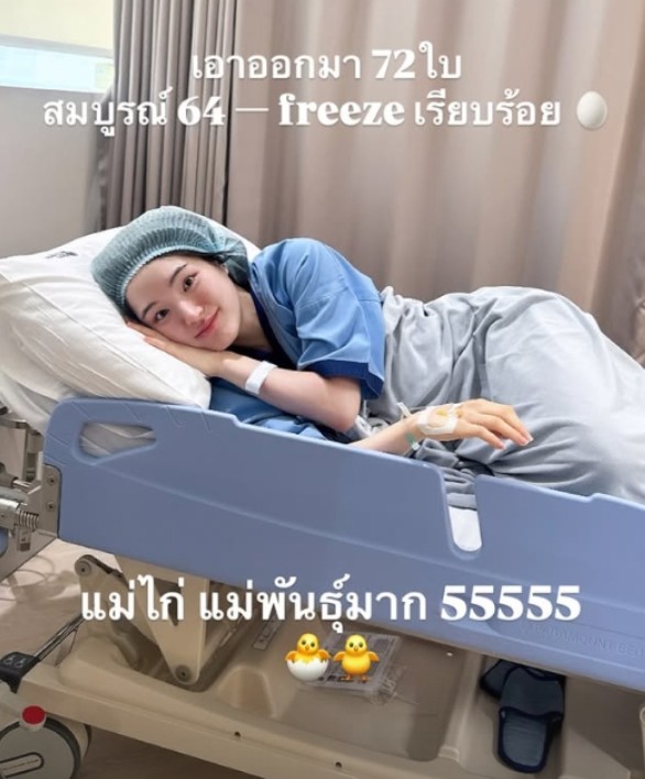 นอกจากนี้เจ้าตัวยังย้ำว่า การเลือกเก็บไข่เป็นการวางแผนเพื่ออนาคต เพราะแม้ตอนนี้ยังไม่คิดมีลูก แต่หากวันหนึ่งพร้อมแล้วแต่ท้องยาก ก็ยังมีทางเลือกสำรองไว้ใช้งาน