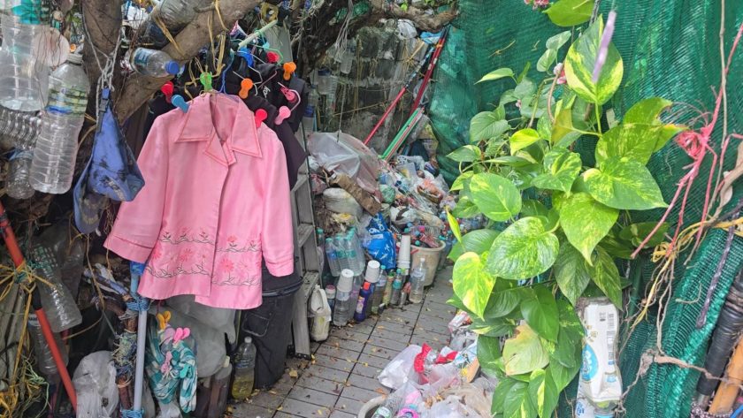 ขณะที่ผู้สื่อข่าวเองได้ตะโกนเรียก เจ้าของบ้านด้วยเสียงอันดัง แต่ก็ไม่มีใคร อยู่ในบ้านสังเกตพบว่าภายในบ้านเต็มไปด้วยขยะและขวดน้ำกองทิ้งไว้จนเหลือทางเดินแคบๆ เพียงแค่ให้เดินเข้าไปในบ้านเท่านั้นเอง ส่วนที่ประตูเล็กพบว่ามีการคล้องกุญแจล็อคประตูบ้านไว้ จนกระทั่งเวลาผ่านไปนานกว่า 1 ชั่วโมง ได้มีหญิงสาวนั่งรถแท็กซี่ เข้ามาที่บ้าน หลังนี้ ผู้สื่อข่าวจึงเข้าไปสอบถามทราบว่าชื่อป้านุช พักอาศัยอยู่กับสามีที่บ้านหลังนี้เพียงแค่ 2 คน
