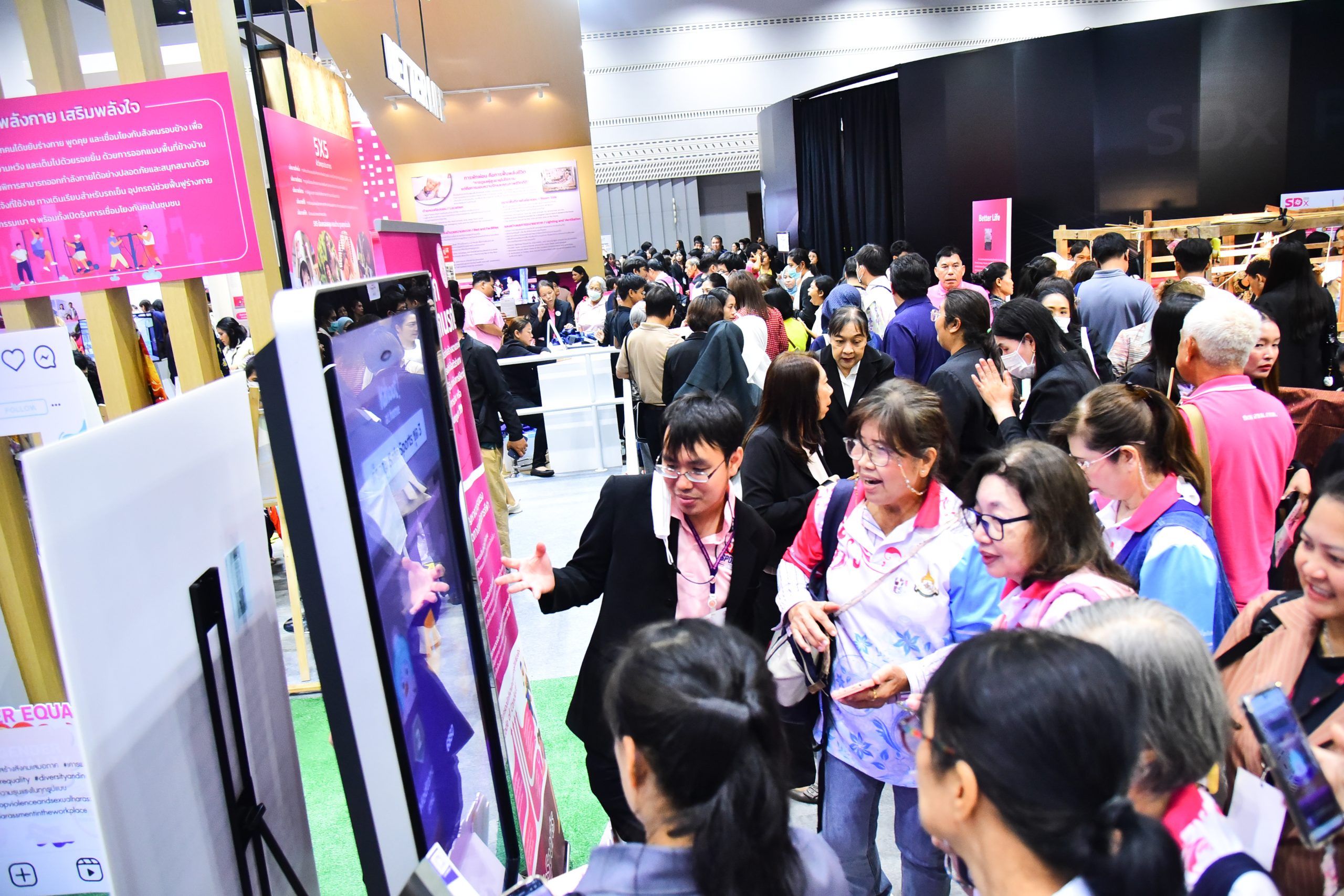 โดยในส่วนกิจกรรมที่น่าสนใจของ กรมกิจการสตรีและสถาบันครอบครัว เวทีกลาง อาทิ กิจกรรมสาธิตนวดเพื่อผ่อนคลาย/นวดแก้ปัญหาออฟฟิศซินโดรม Ted Talk ความเสมอภาคระหว่างเพศ ในครอบครัว(Gender in Family) โซนนิทรรศการ สาธิตการทำขนมไทยโบราณ กิจกรรม Age simulation การจำลองเป็นผู้หญิงตั้งครรภ์ กิจกรรมขวดน้ำใจเย็นและเพื่อนครอบครัว (Line Family) พร้อมนำเสนอโครงการ SAFE SPORTS การล่วงละเมิดคุกคามทางเพศในการกีฬา เพื่อเสริมสร้างความรู้ ความเข้าใจเกี่ยวกับสถานการณ์ปัญหาและรูปแบบของการล่วงละเมิดหรือคุกคามทางเพศ การปรับเปลี่ยนเจตคติของคนในสังคมให้ตระหนักถึงการป้องกันและแก้ไขปัญหาการล่วงละเมิดหรือคุกคามทางเพศในการกีฬา นอกจากนี้ยังนำผลิตภัณฑ์จากฝีมือกลุ่มสตรี โดยร้านทอฝัน by พม. มาจัดจำหน่าย เพื่อส่งเสริมอาชีพ สร้างรายได้ สู่ชุมชน