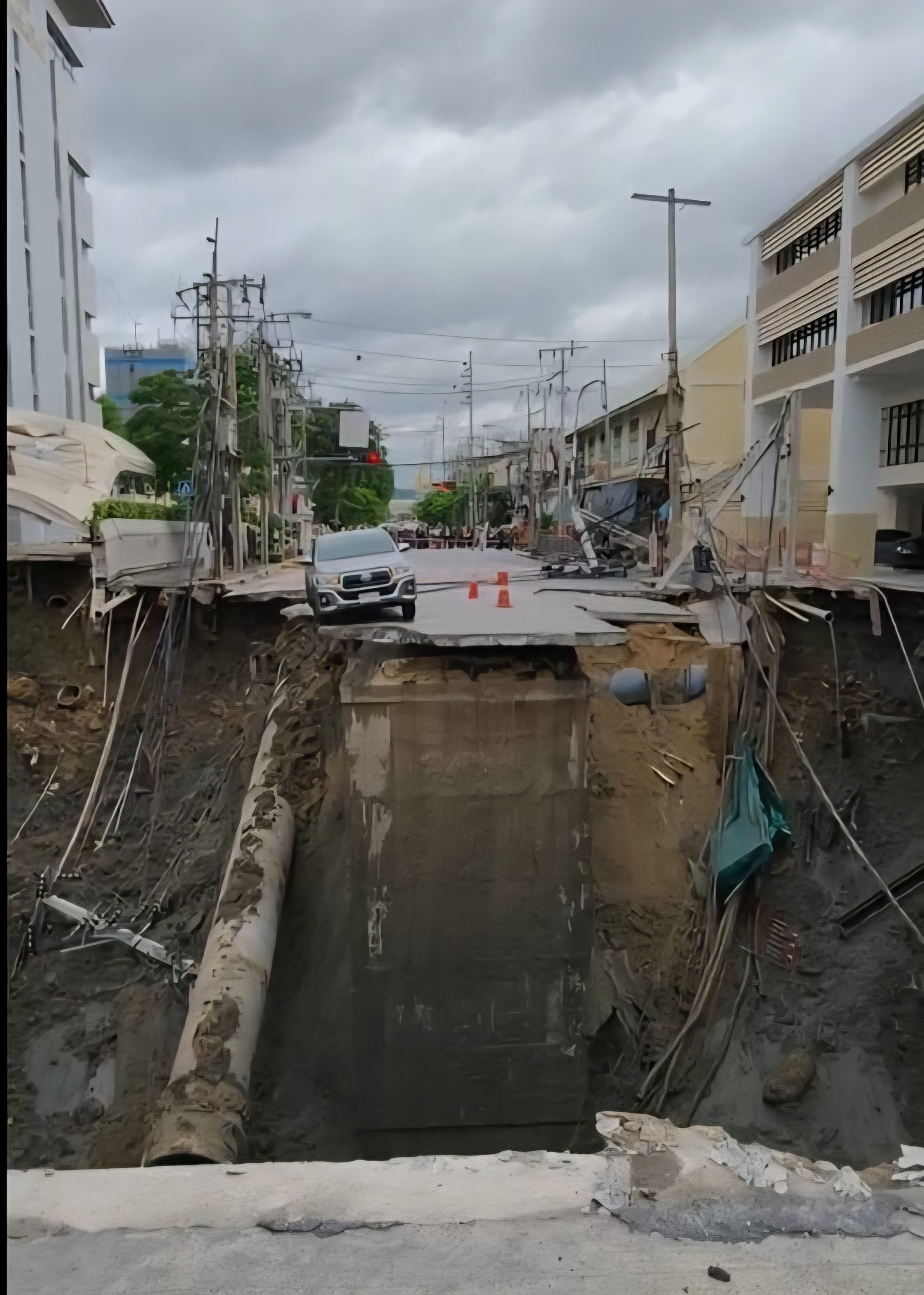 เมื่อเวลา 09.30 น. วันที่ 24 กันยายน 2568 นายชัชชาติ สิทธิพันธุ์ ผู้ว่าราชการกรุงเทพมหานคร (ผู้ว่าฯ กทม.) เปิดเผยภายหลังการประชุมกับหน่วยงานที่เกี่ยวข้องว่า เหตุการณ์ถนนยุบตัวบริเวณสถานีโรงพยาบาลวชิระ ซึ่งเป็นพื้นที่ก่อสร้างรถไฟฟ้าสายสีม่วงใต้ เกิดจากสองสาเหตุหลักคือ อุโมงค์รถไฟฟ้าแตก และท่อประปารั่ว