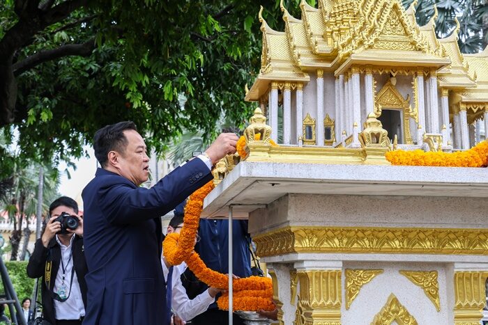 ซึ่งทันทีที่สักการะเสร็จสิ้น ผู้สื่อข่าวถามว่าขอพรอะไร นายกฯ กล่าวว่า ขอให้ราบรื่น ก่อนเดินกลับขึ้นตึกไทยคู่ฟ้า ต่อมาผู้สื่อข่าวถามอีกว่าจะนำเครื่องรางอะไรเข้ามาที่ทำเนียบรัฐบาลด้วยหรือไม่ นายกฯ ตอบว่า “อยู่ที่ใจ”